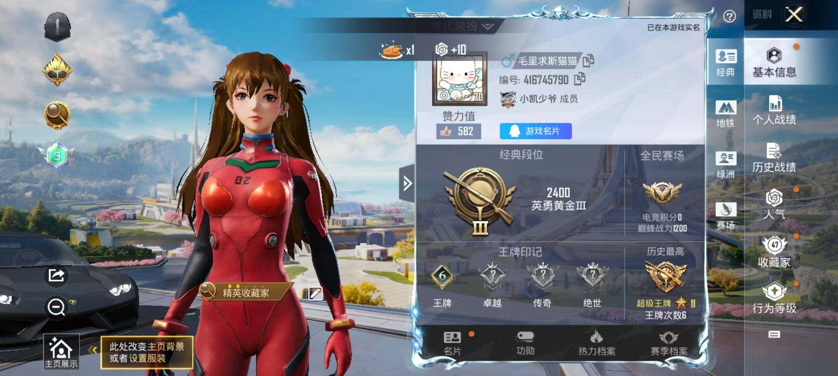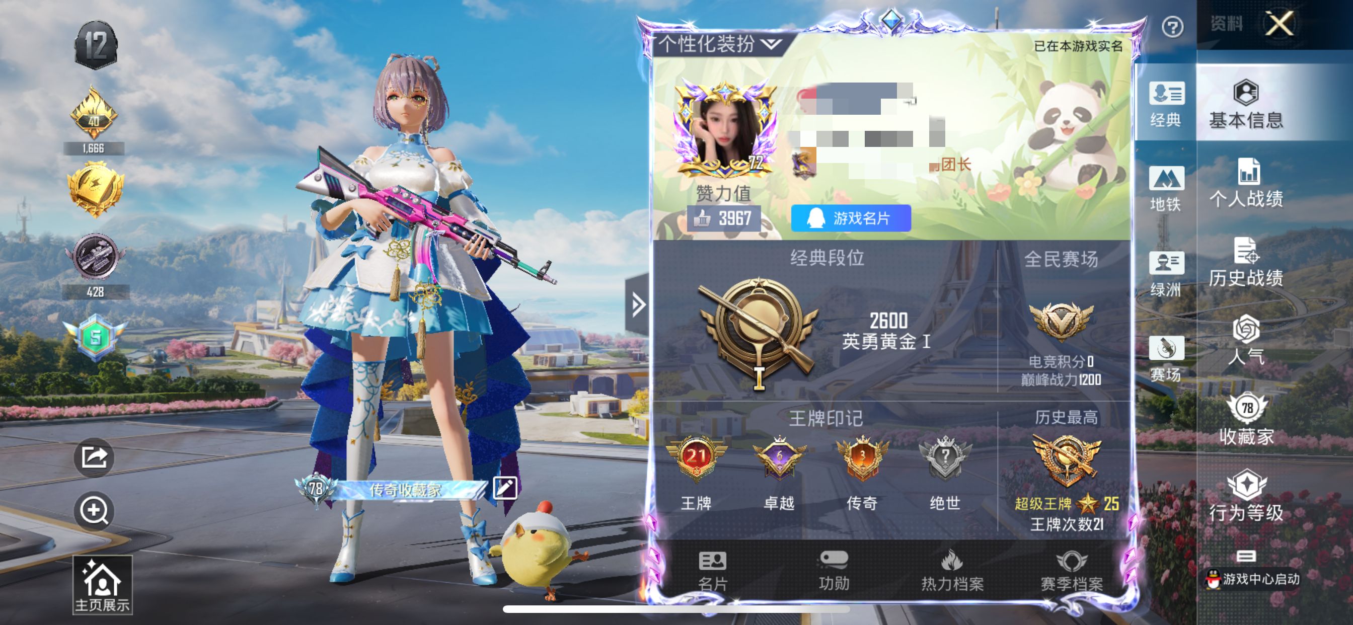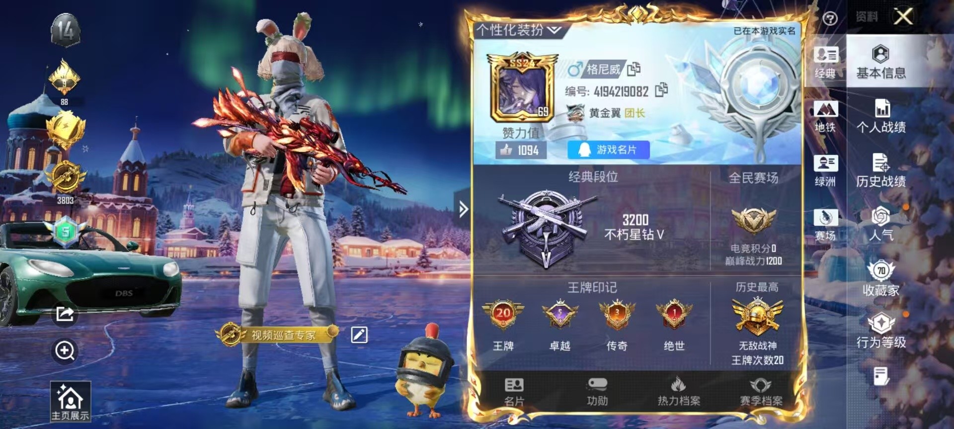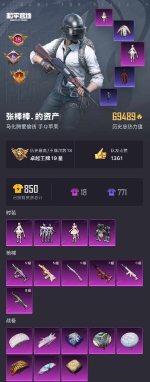实名: 可修改 时装数: 288 载具数: 4 枪械数: 107 战备数: 6