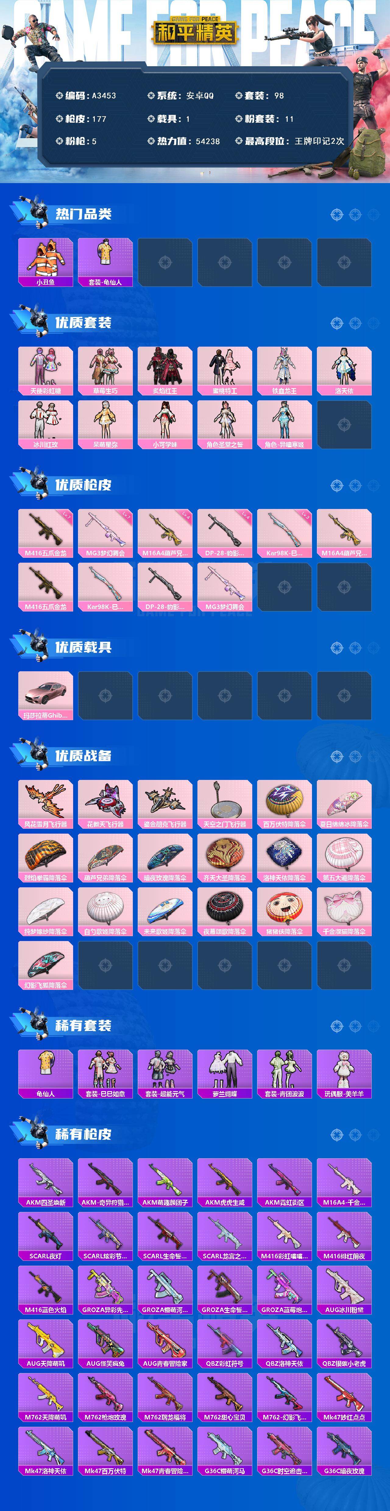 hs46613 安卓v-4王牌印记-1粉装-5特效枪-2载具-34193热力值-69套装-114枪