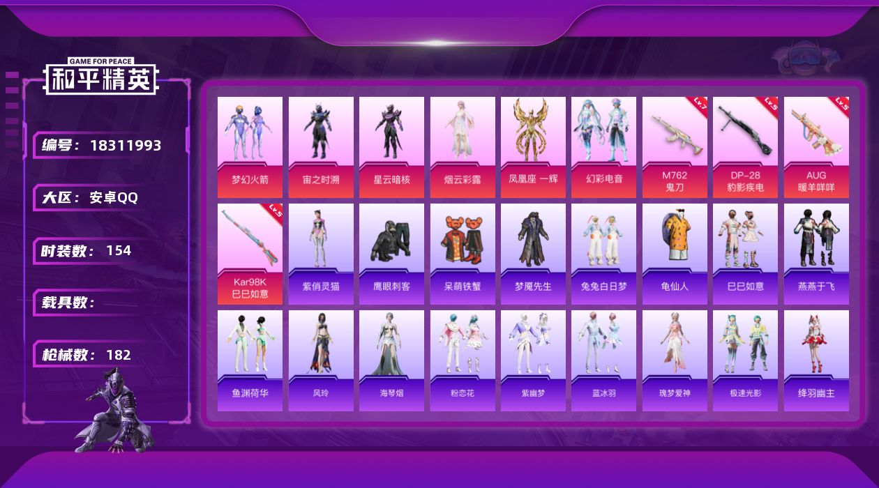 安卓 手Q-2粉装-11特效枪-0载具-0粉色飞行器-45128热力值-2王牌印