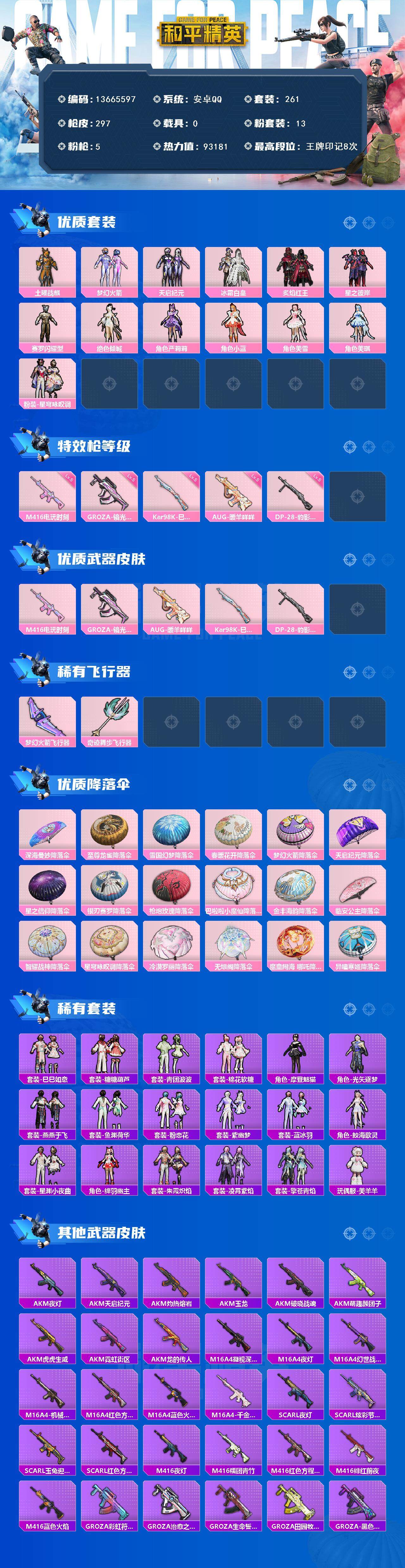 hs51902 安卓手Q-9王牌印记-3粉装-7特效枪-3载具-61483热力值-156套装-197