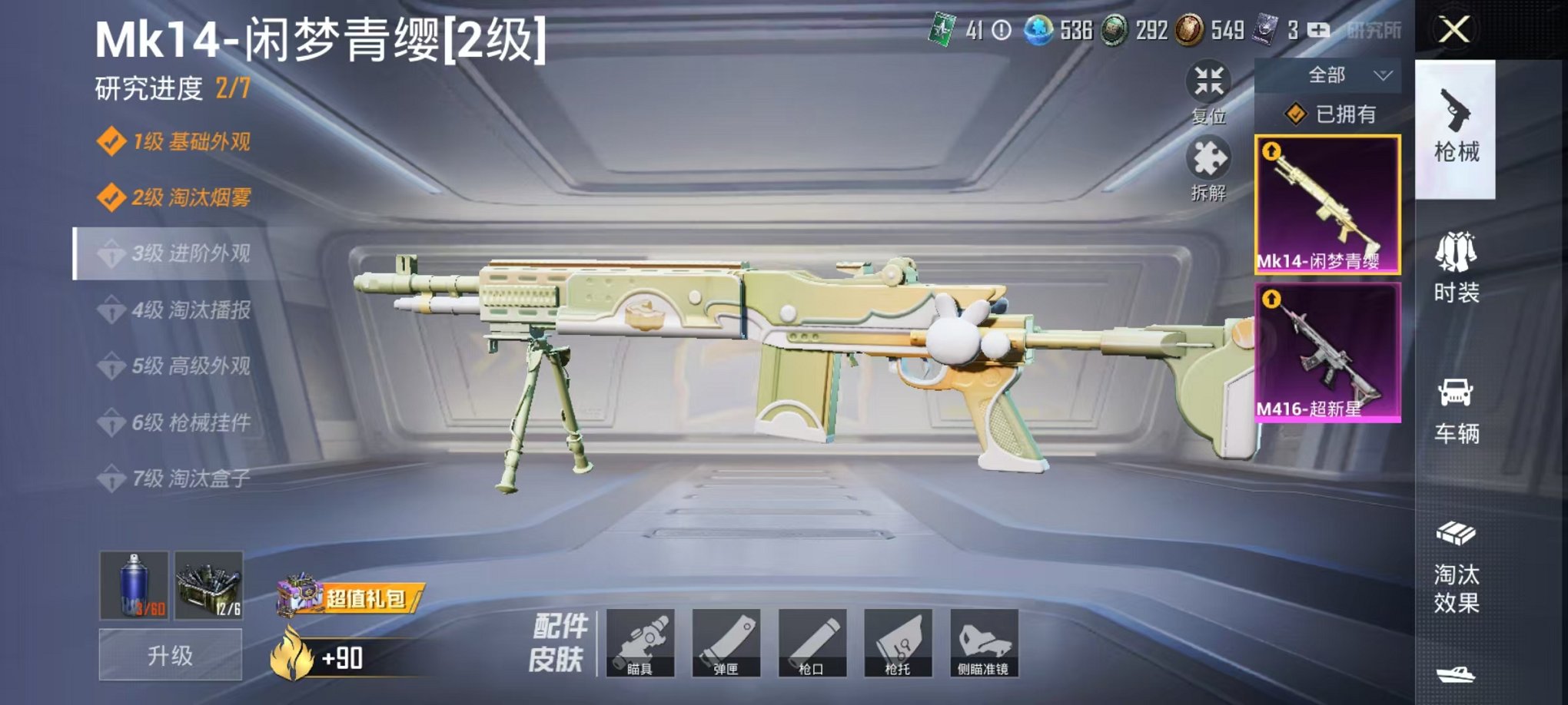 安卓qq-61级螳螂三车五特效-M416-至情至圣,AKM-星际浪客,Kar98K-绿意幻情