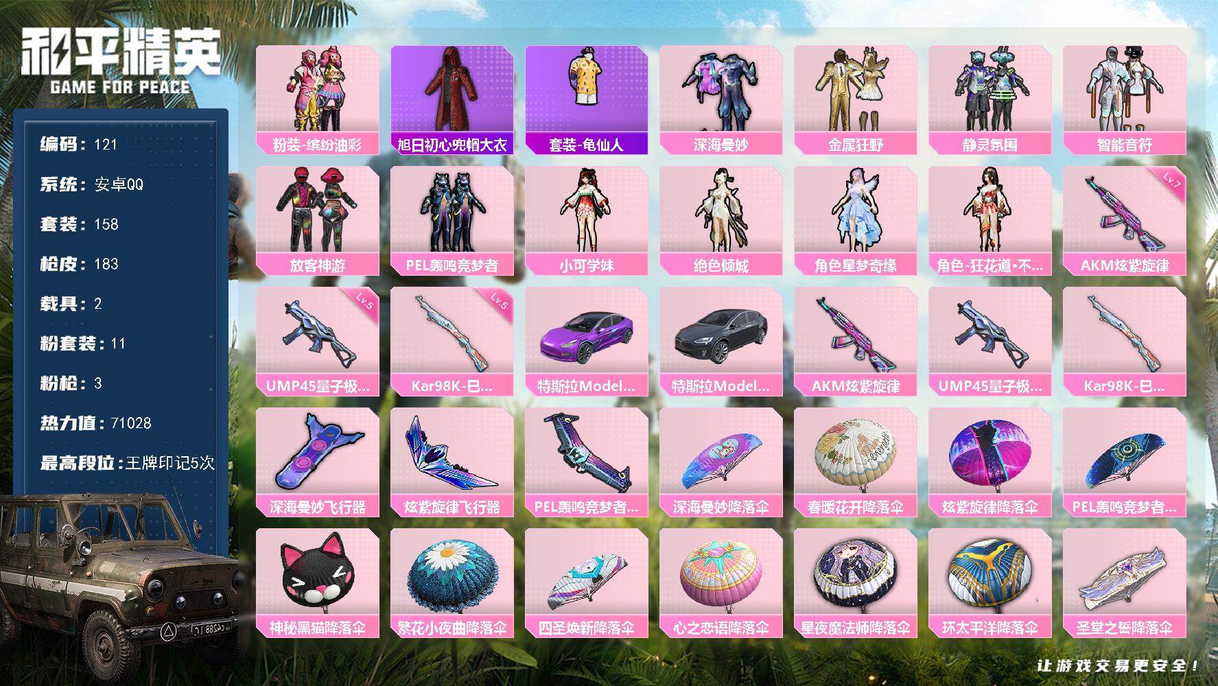 hs40663 安卓手Q-9王牌印记-7粉装-13特效枪-0载具-63306热力值-135套装-20