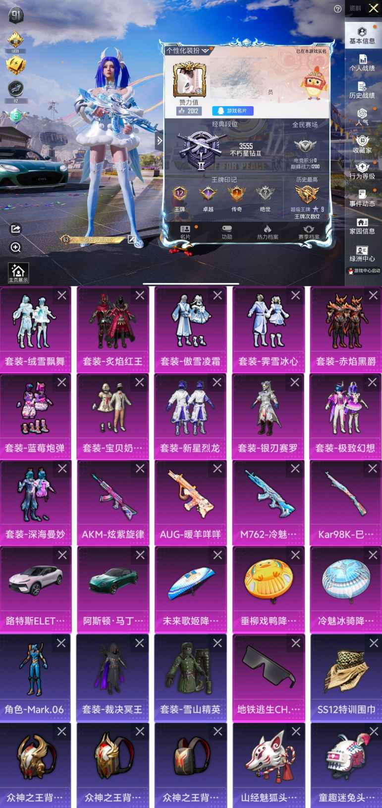 a4106/安卓QQ/-16王牌印记-11粉装-4特效枪-2载具-93412热力值-211套装-28