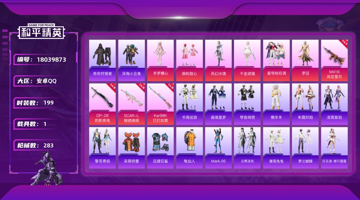 安卓 手Q-5粉装-9特效枪-0载具-5粉色飞行器-52401热力值-3王牌印记