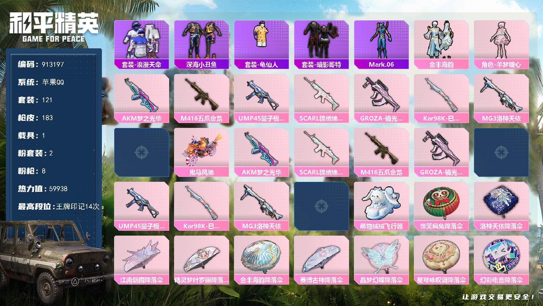 2粉装-8特效枪-1载具-3粉色飞行器-59938热力值-14王牌印记-121套装-183枪皮