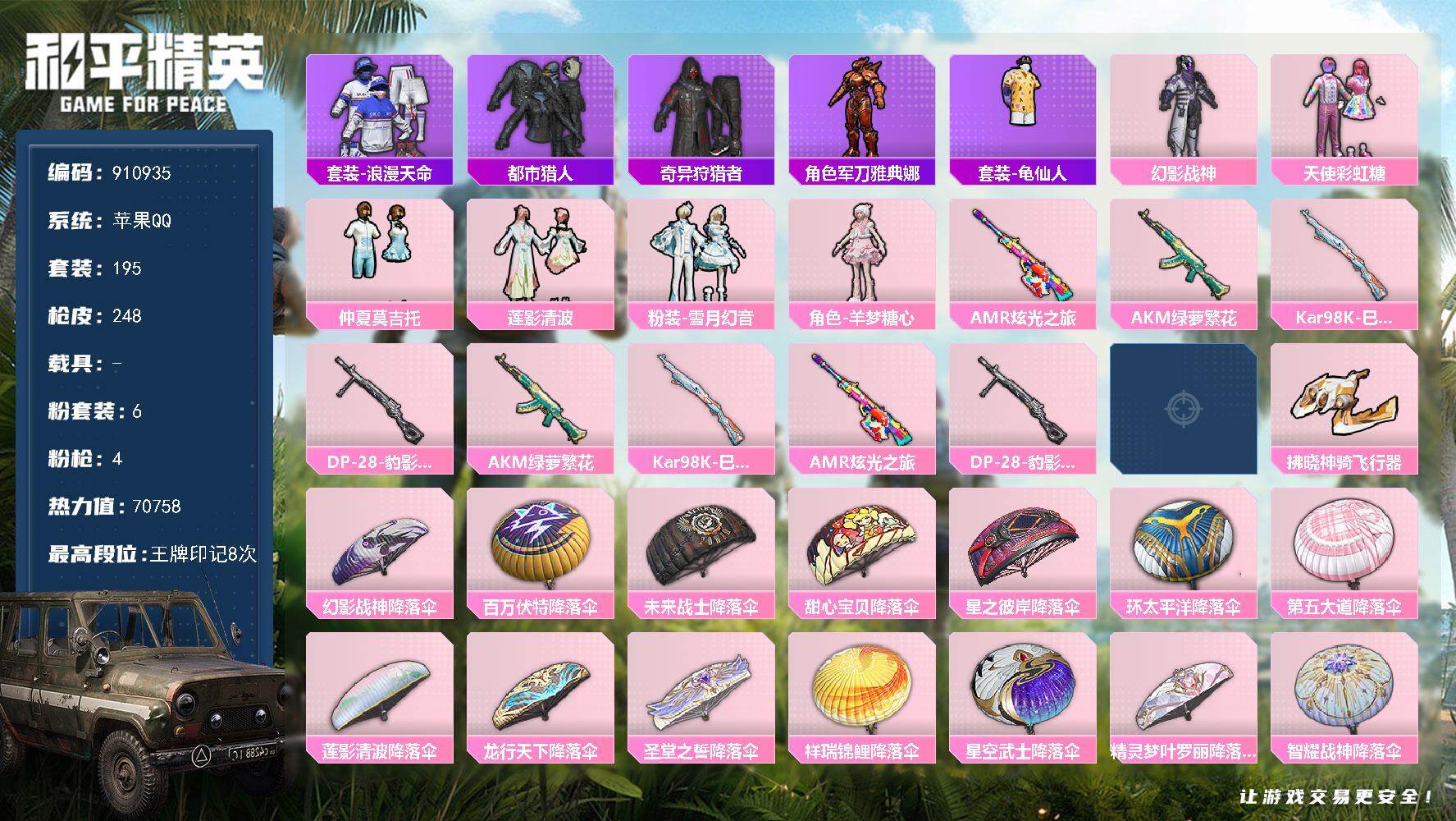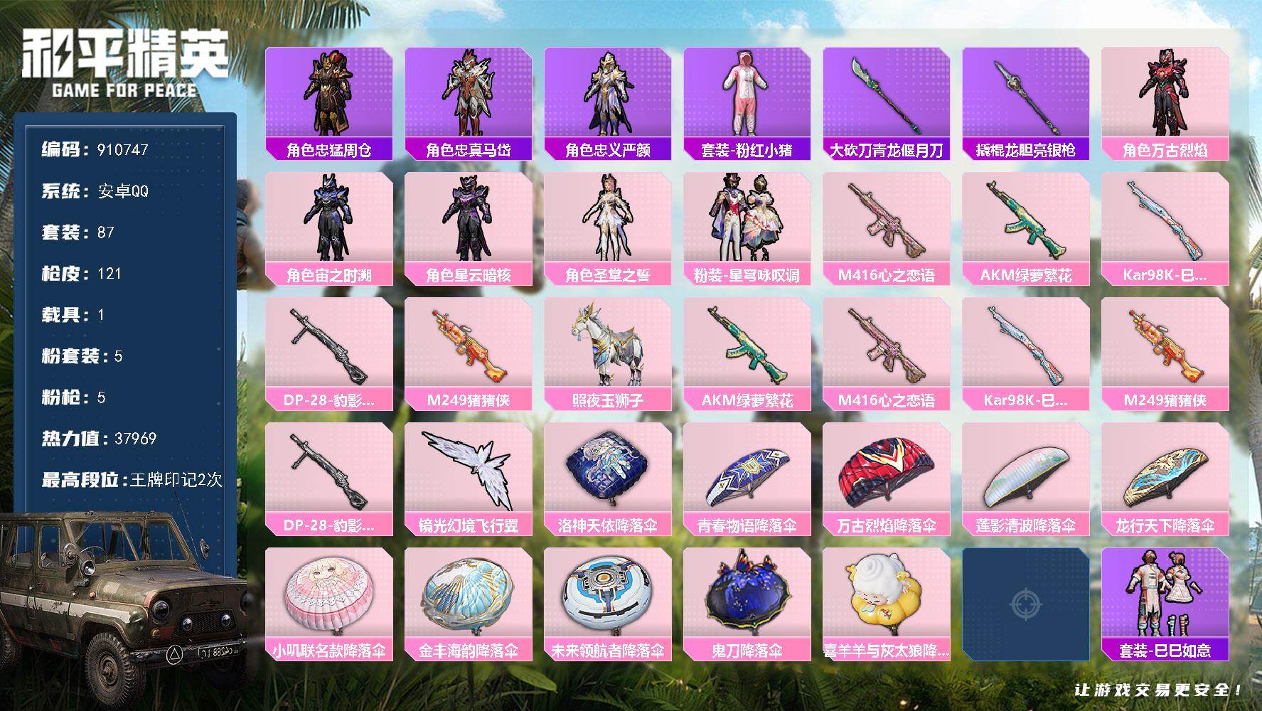 安卓 手Q-6粉装-9特效枪-2载具-2粉色飞行器-80914热力值-11王牌