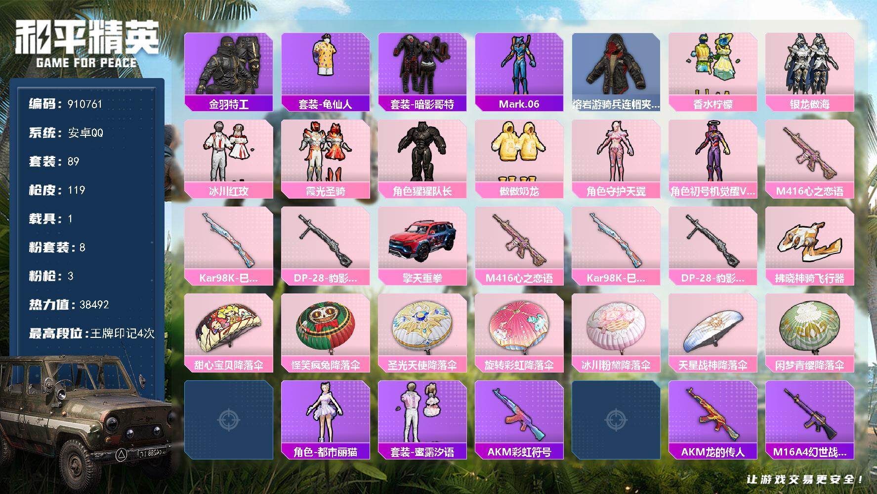 11王牌印记-5粉装-14特效枪-2载具-85586热