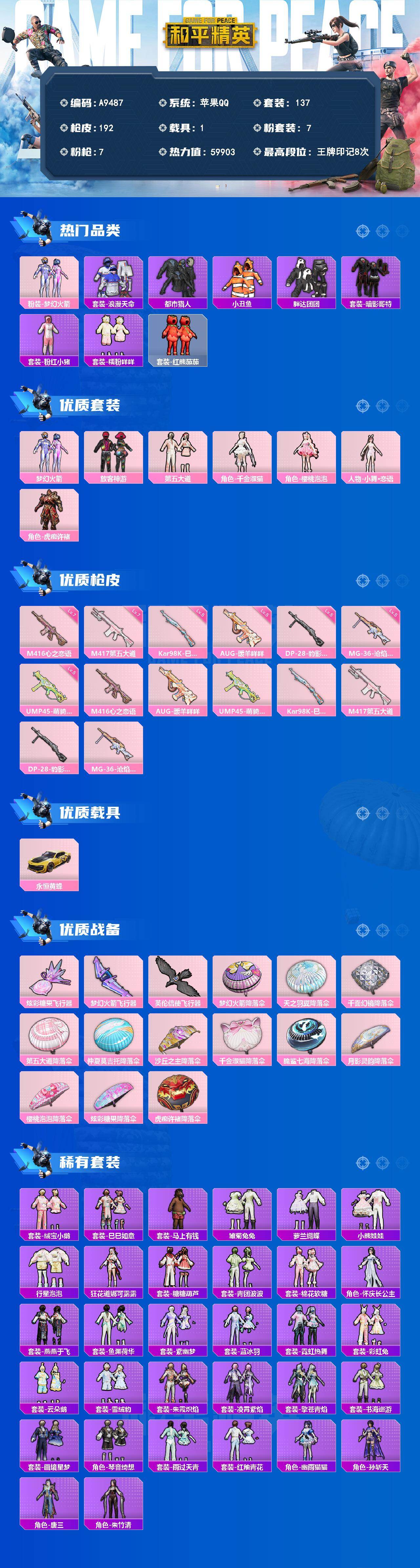 hs66209 苹果手Q-14王牌印记-2粉装-6特效枪-2载具-69619热力值-126套装-22