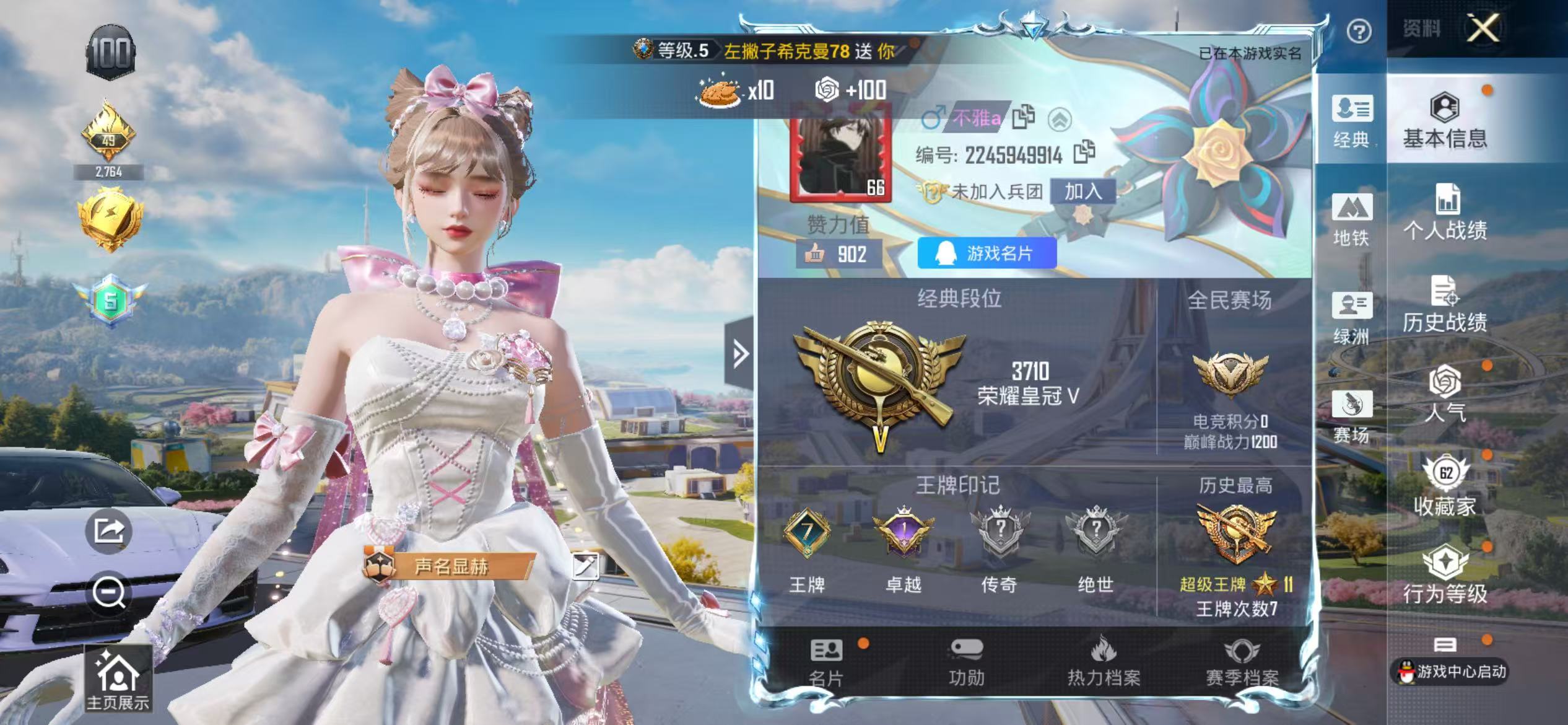 热力值35333 2载具 14粉 7特效枪 梦幻火箭 宾利添越(浅瞪羚棕) 宾利飞驰(布罗德盖棕双色