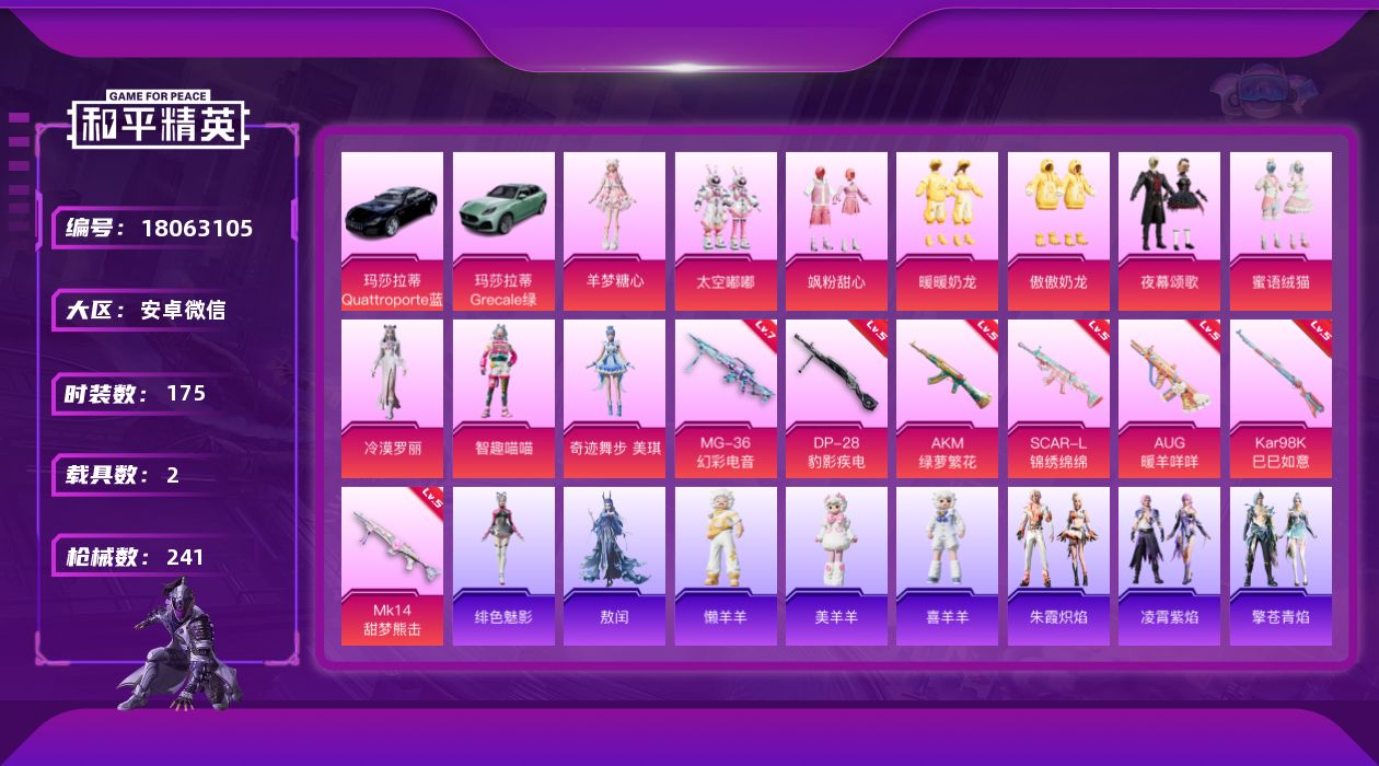 a4249/安卓微/16王牌印记-16粉装-5特效枪-2载具-93937热力值-222套装-257