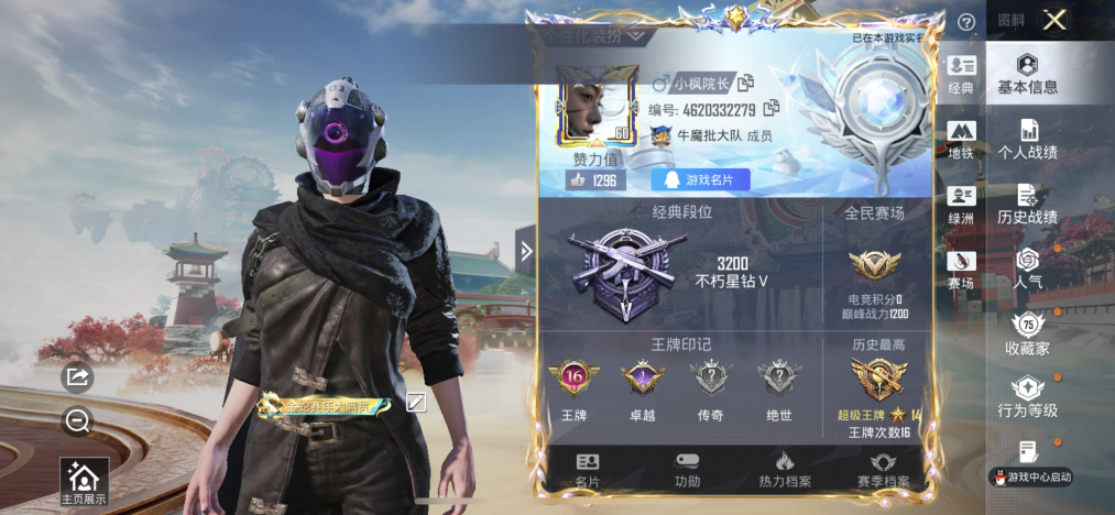 197套装/枪械11/装备395/战备186/王牌印记13/热力值92677/