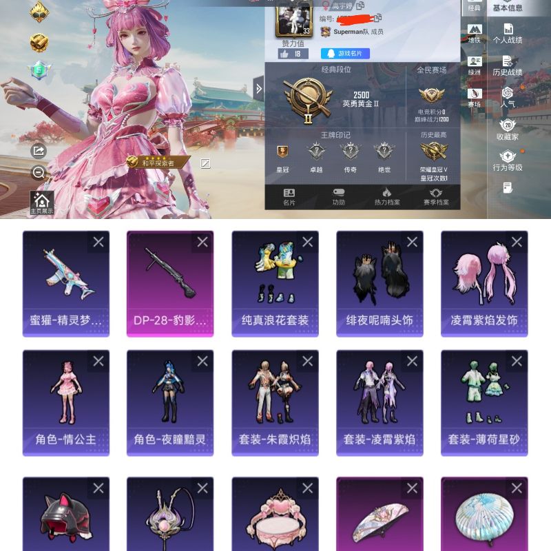 实名: 可修改 时装数: 61 枪械数: 47 战备数: 31 稀有枪皮: K