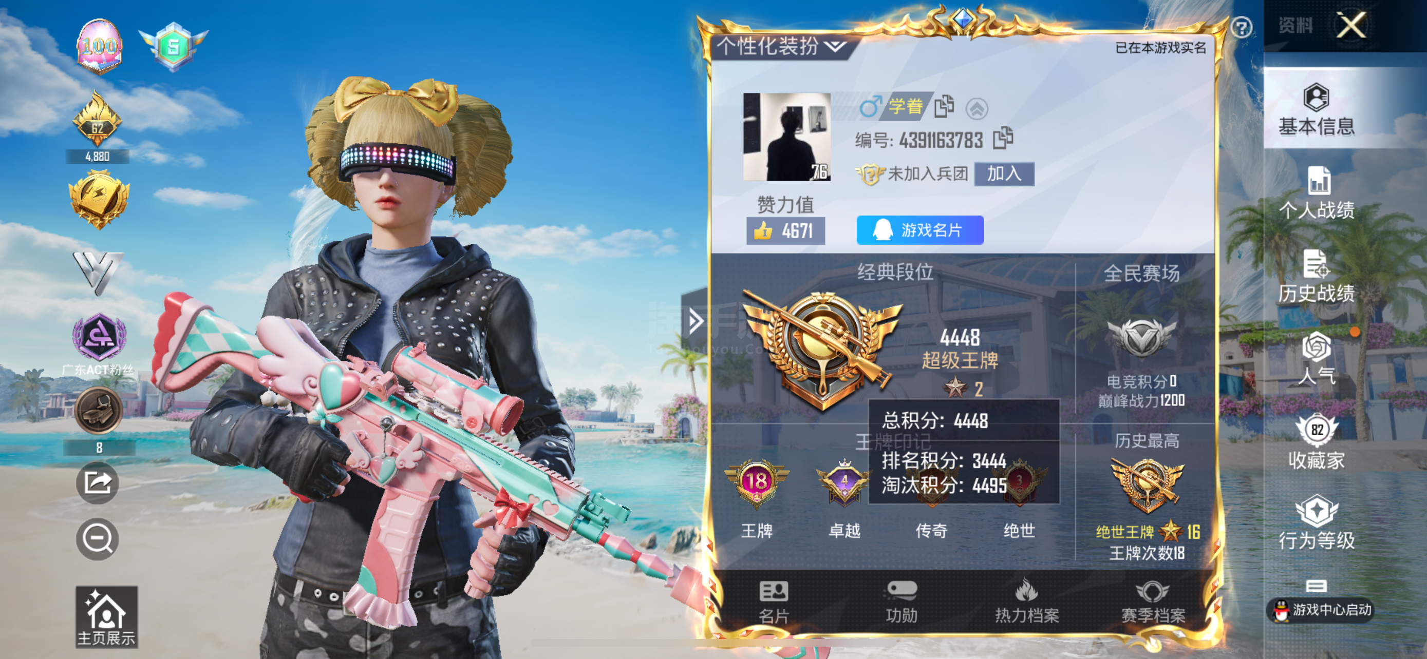 安卓 手Q-13粉装-5特效枪-3载具-1粉色飞行器-54595热力值-2王牌
