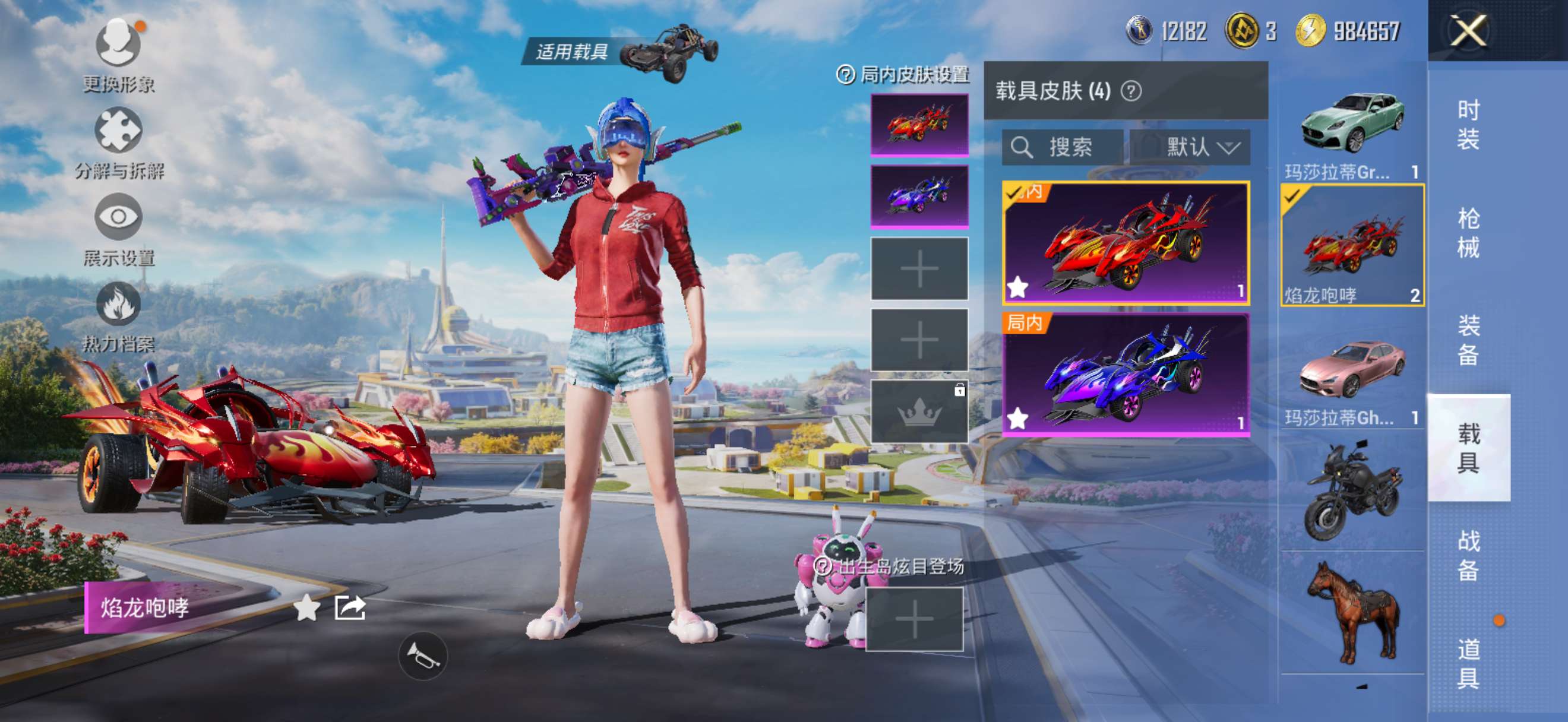 4辆车 火箭少女 死噶头发 小丑女主套背包头盔 高kd数据号