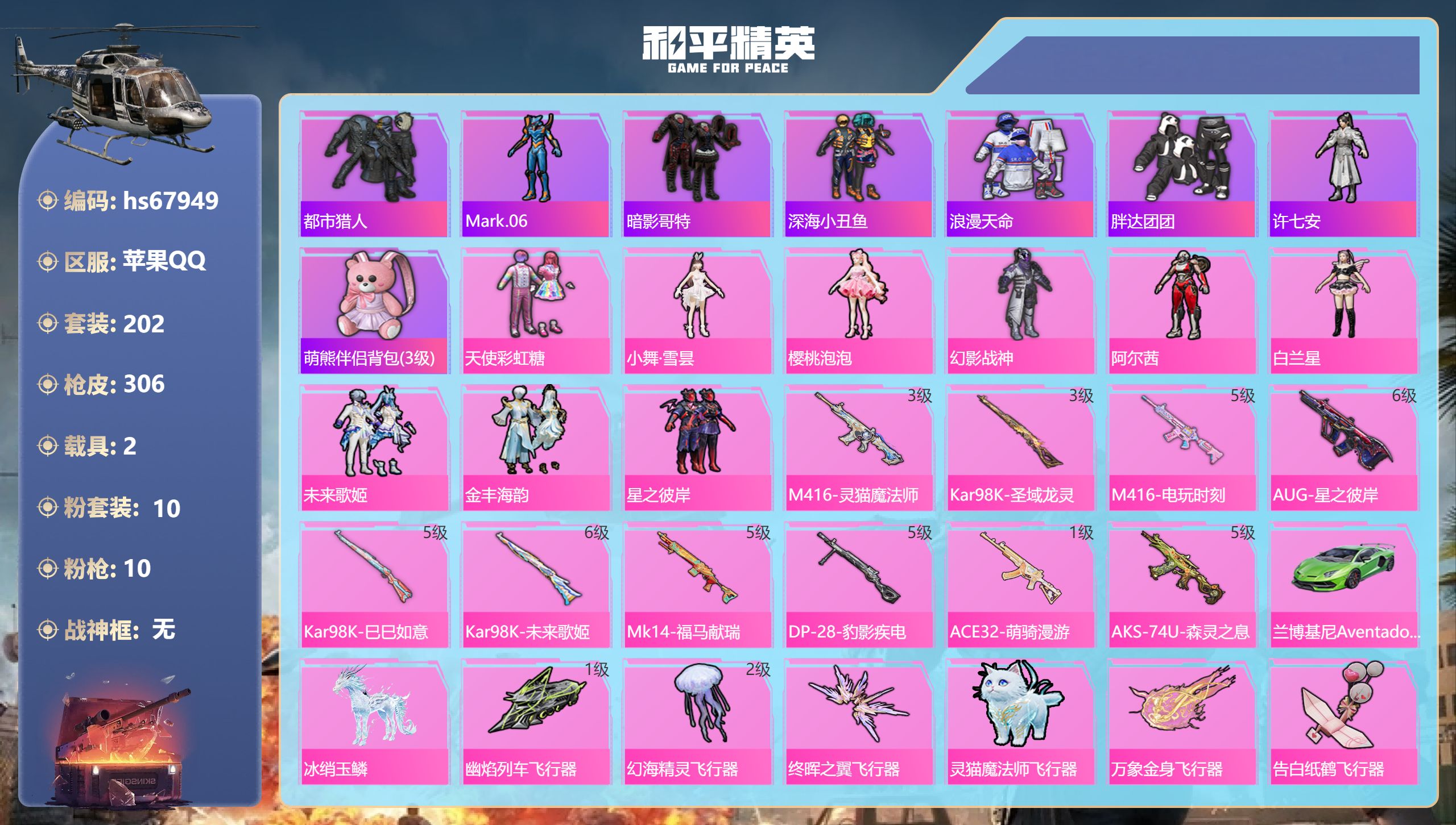二五零八五二六_可二次-苹果Q-2稀有1载具8粉装12特效枪8热门【精品公主