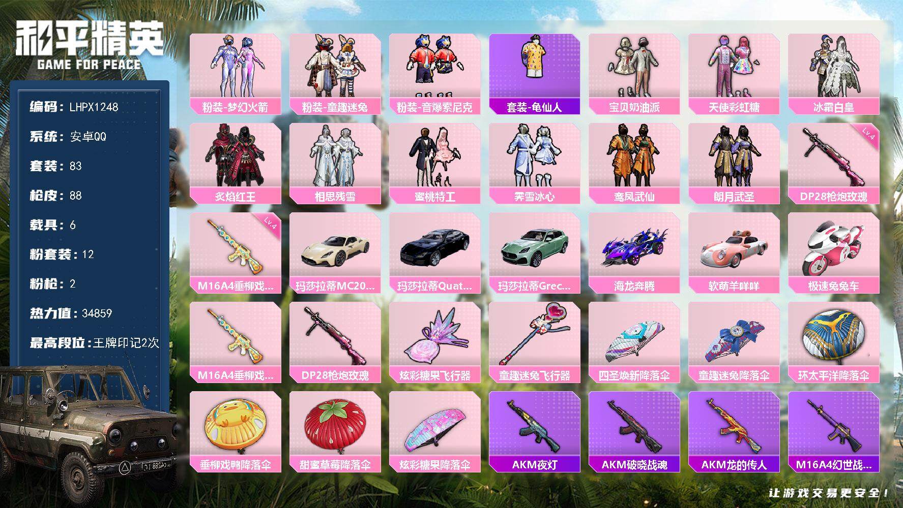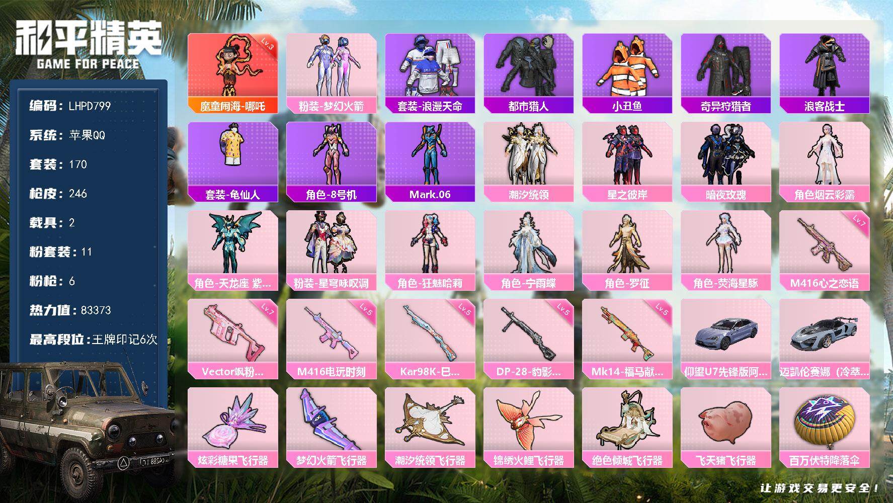 hs63941 苹果手Q-17王牌印记-8粉装-13特效枪-1载具-86610热力值-228套装-2