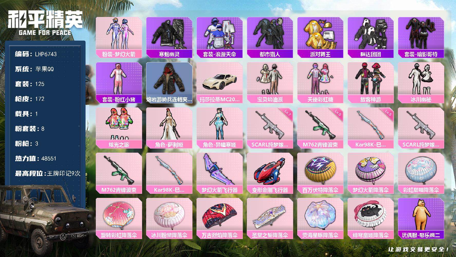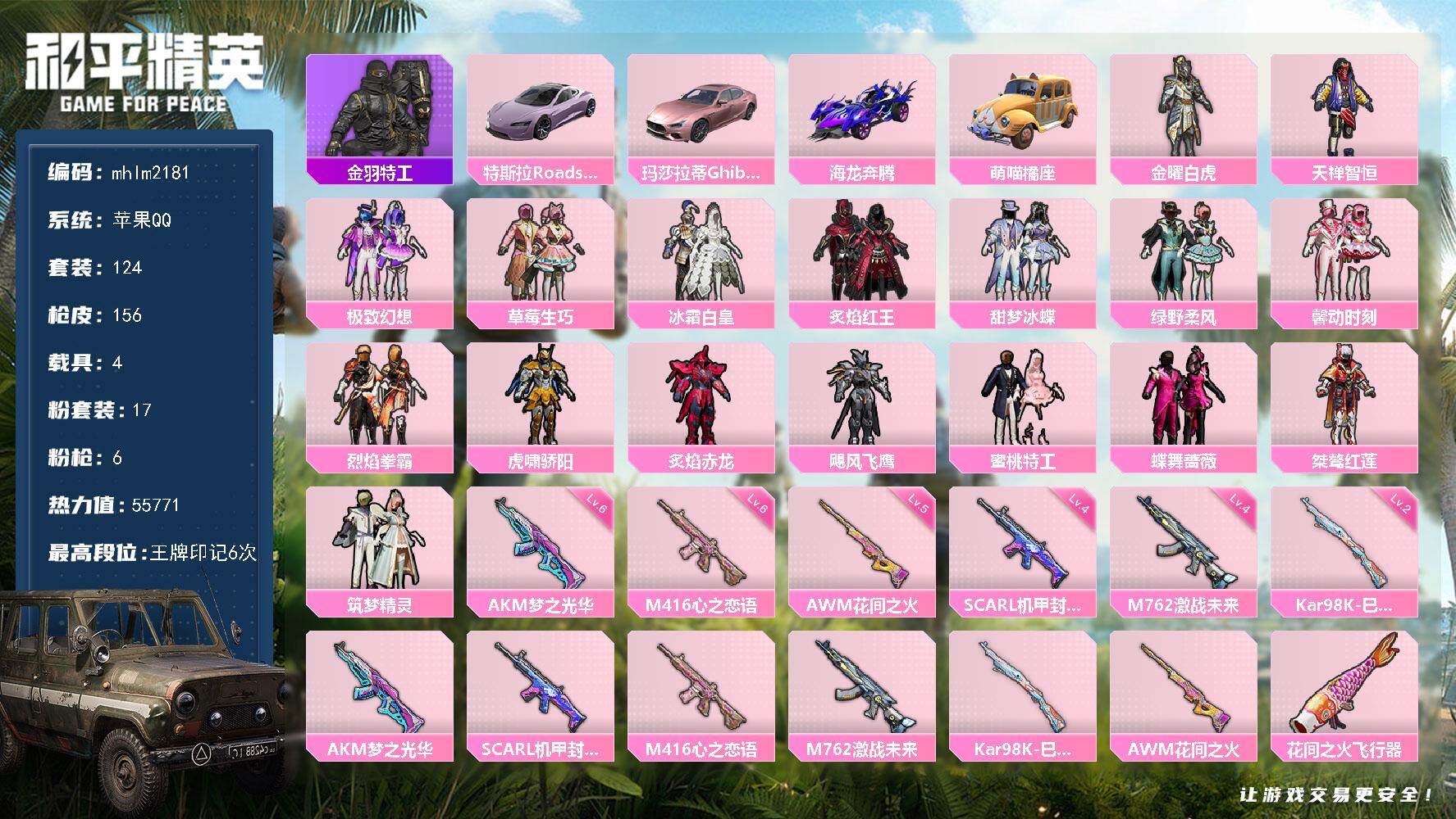 hs49939 苹果手Q-13王牌印记-8粉装-9特效枪-2载具-81305热力值-161套装-24