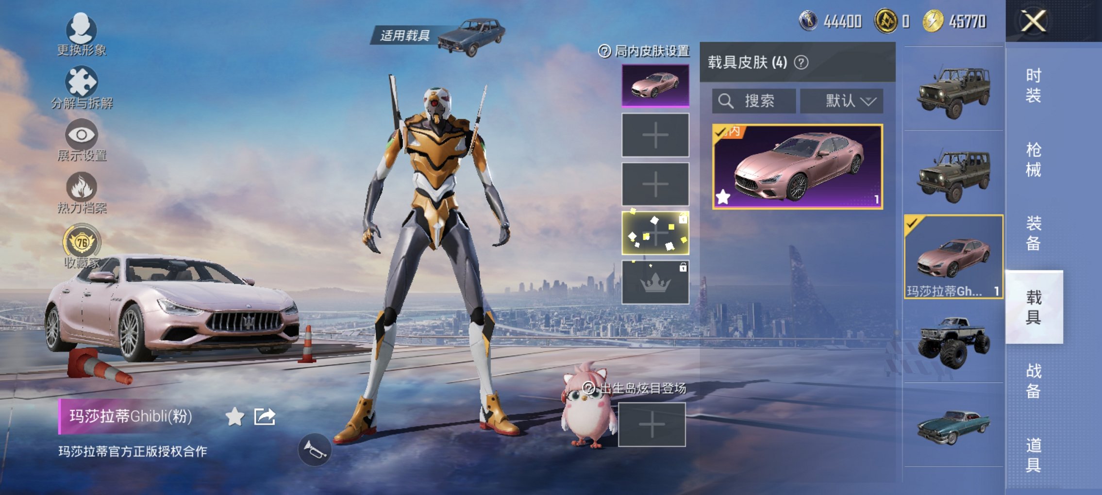 1神装-8粉装-11特效枪-1载具-3粉色飞行器-74836热力值-