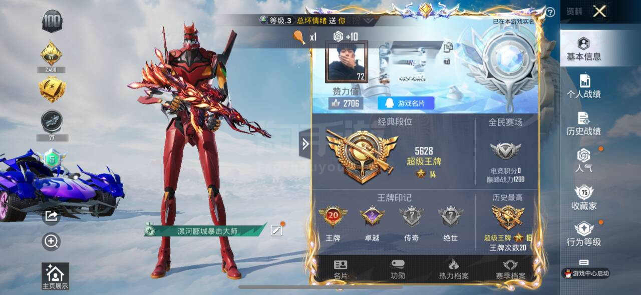 等级Lv.71 热力值639474粉装7粉枪1载具