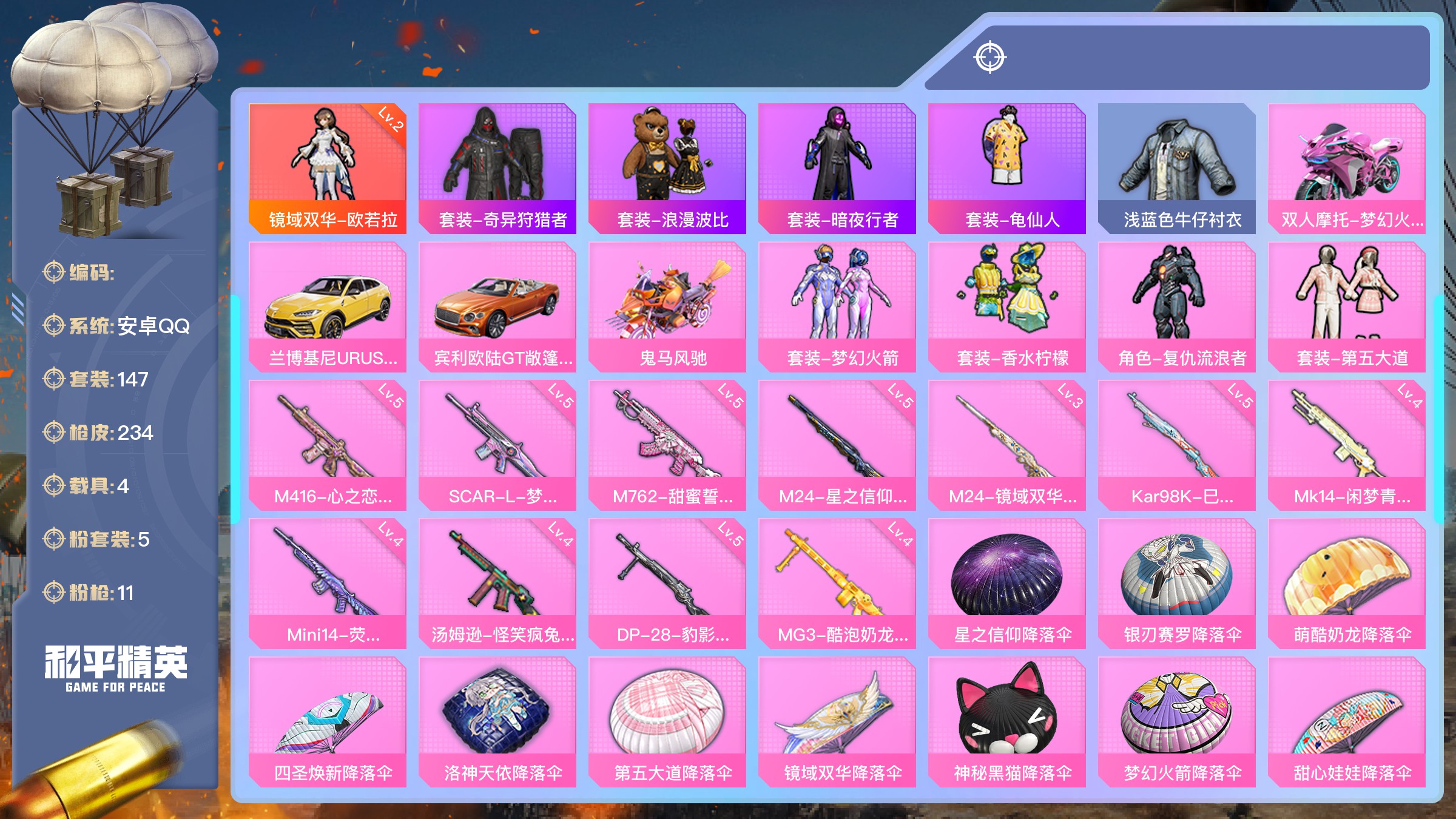 女号19粉装8特效枪1载具 安卓Q区-63854热力值-7印记