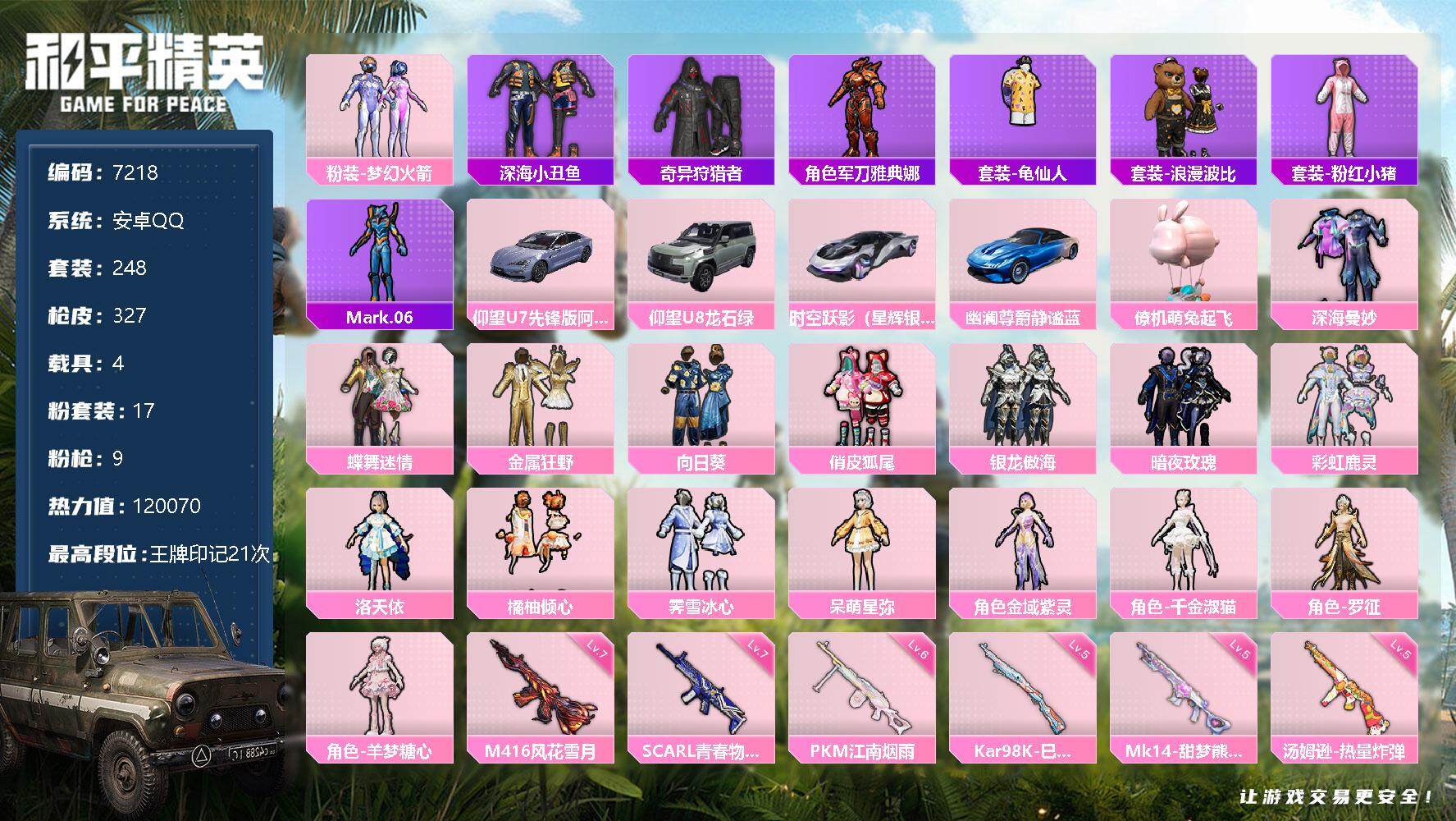 【7218】17粉装-9特效枪-4载具-120070热力值-21印记-248套
