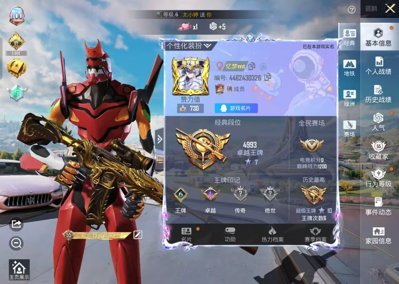 hs53163 安卓手Q-10王牌印记-有战神框-5粉装-11特效枪-1载具-69805热力值-15