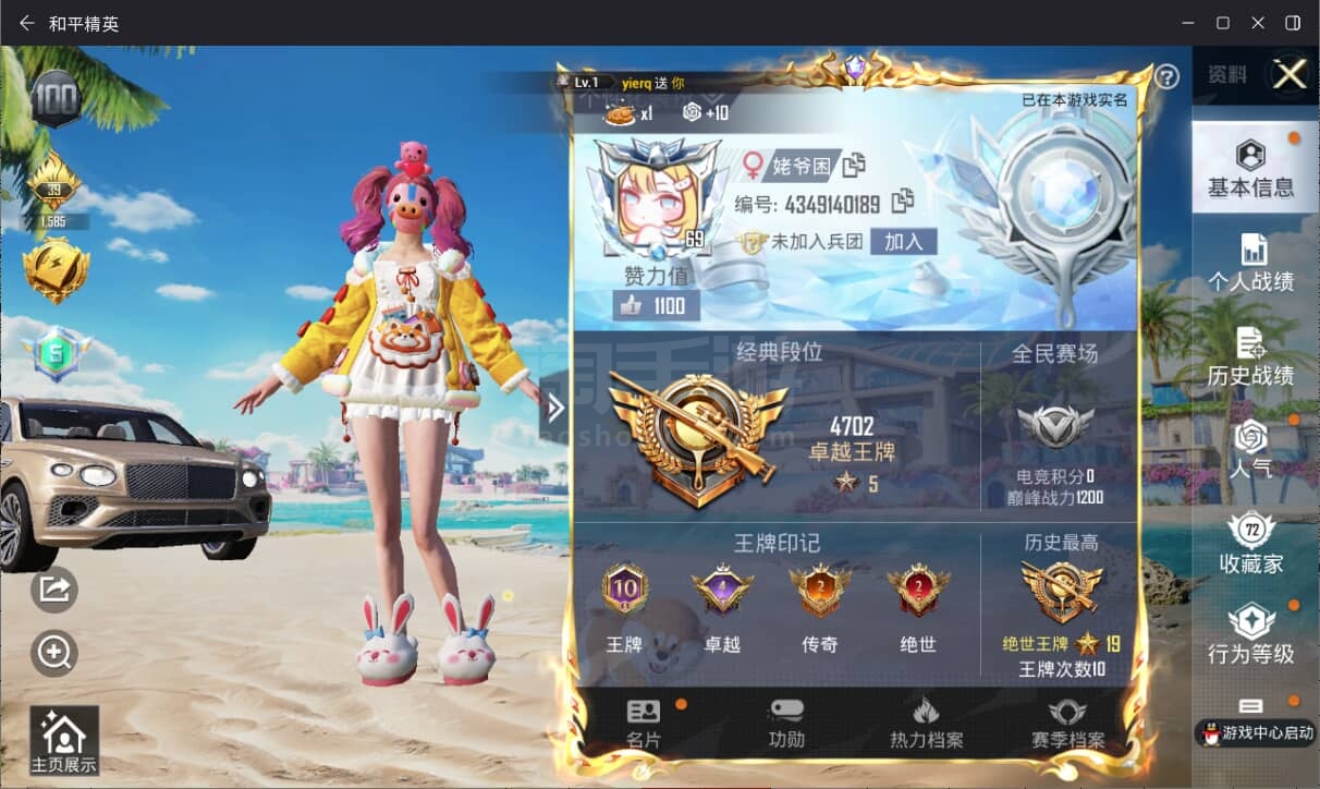 a3696/苹果QQ/小公主号/-10王牌印记-16粉装-6特效枪-5载具-76411热力值-165