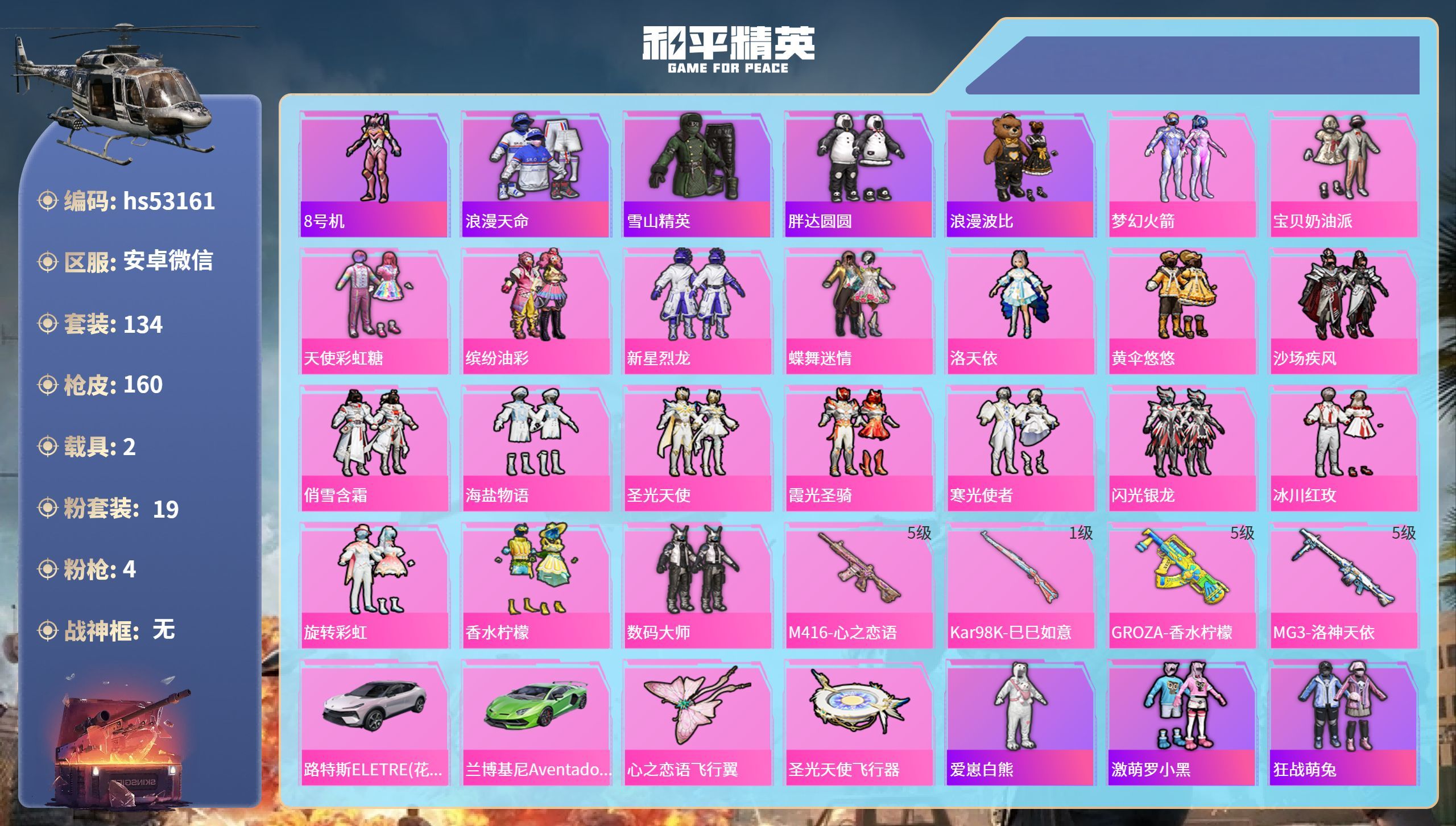 hs53161 安卓v-2王牌印记-19粉装-4特效枪-2载具-60693热力值-134套装-16