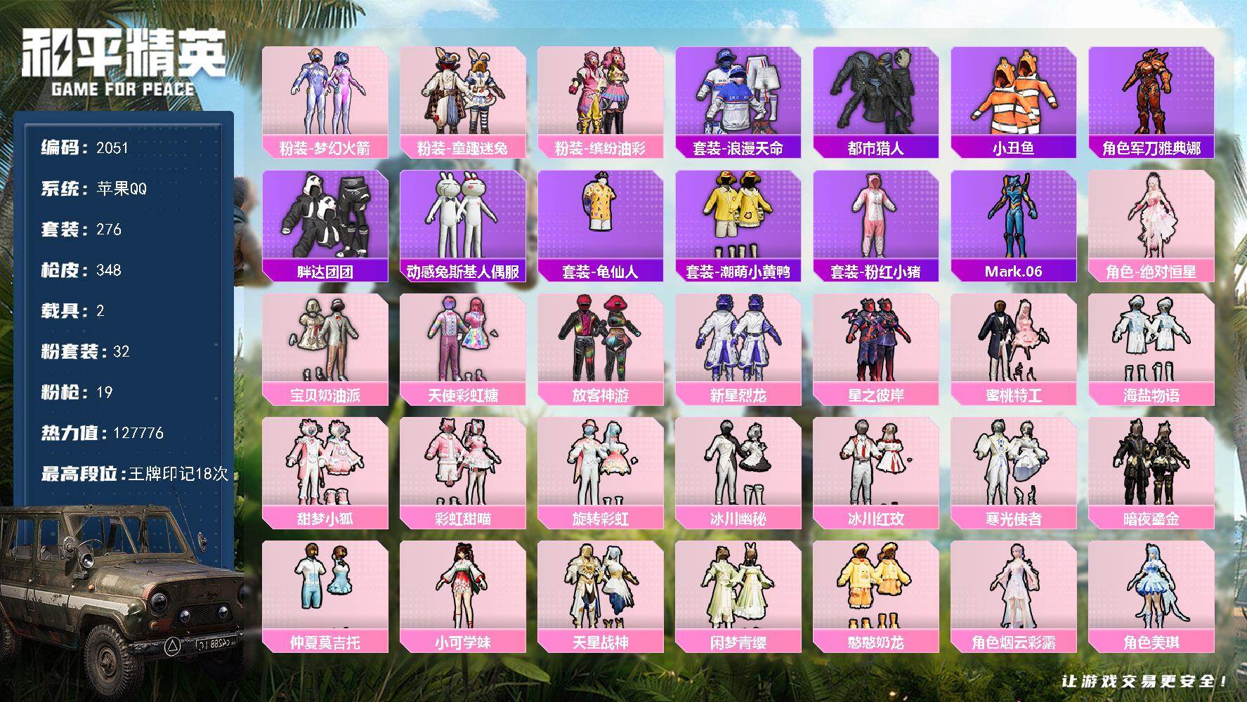 hs46445 苹果手Q-15王牌印记-10粉装-6特效枪-2载具-99062热力值-217套装-3