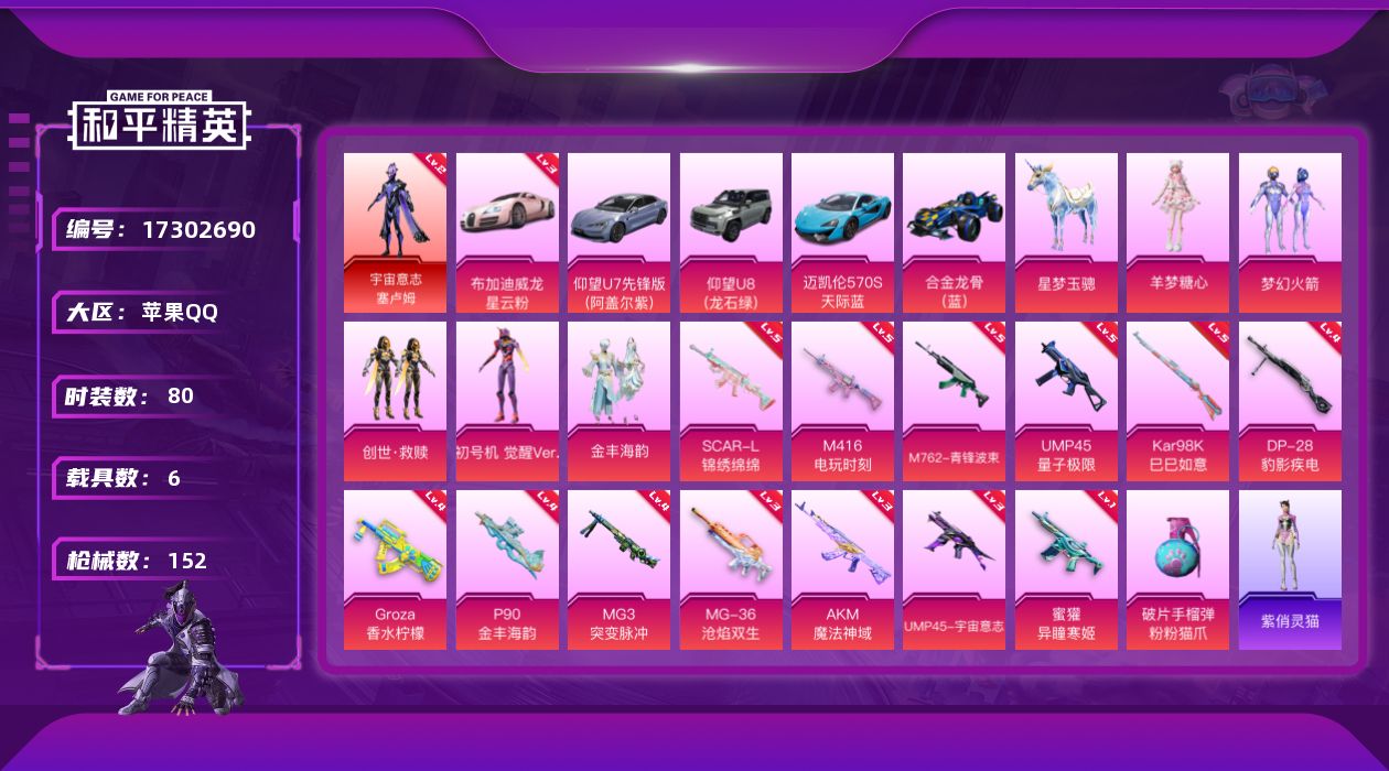 【女号46粉装18特效枪5载具 可秒换绑不用等】 苹果Q区