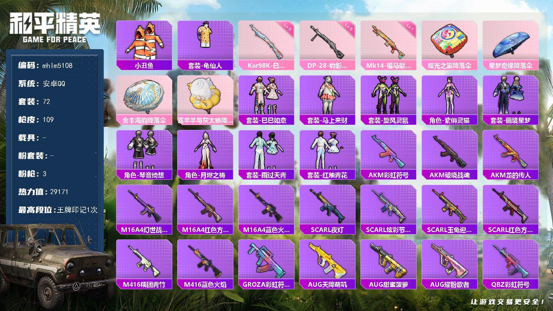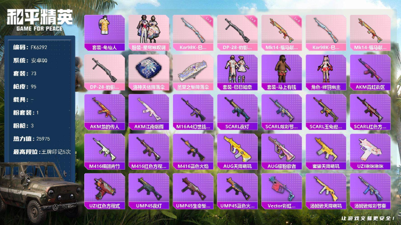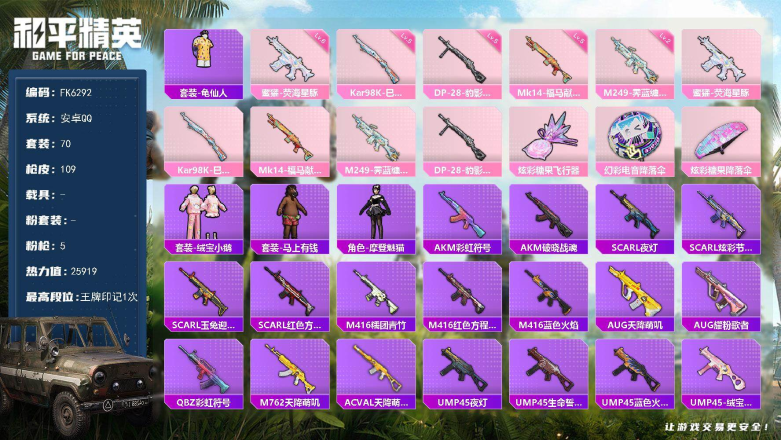 【商品标题】:安卓 手Q-2粉装-1特效枪-0载具-20597热力值-2印记-