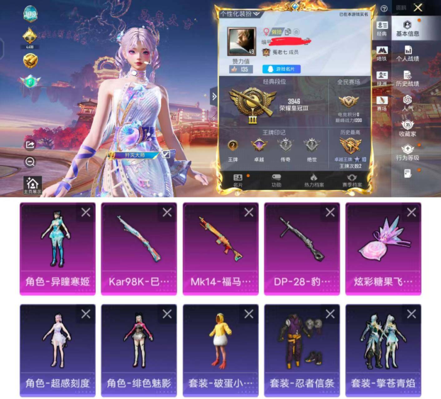 103套装/枪械3/装备108/战备73/王牌印记2/热力值31603/五级G