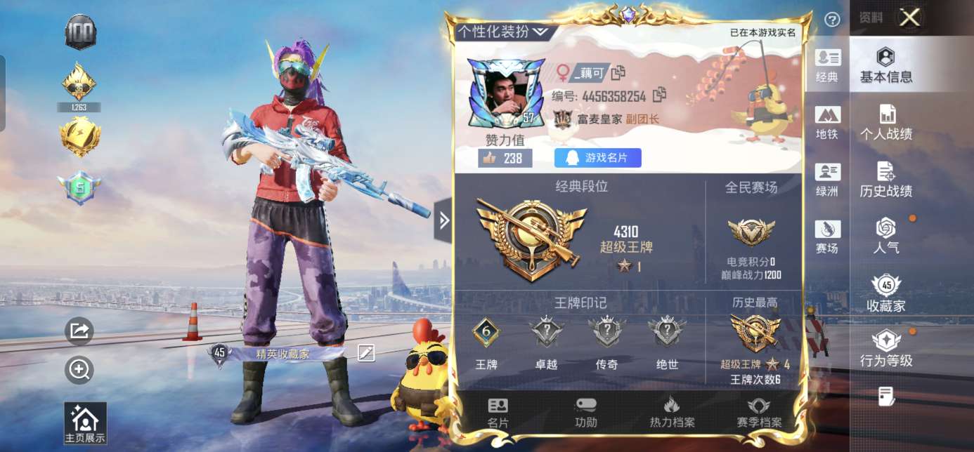 和平精英安卓QQ账号 连体王者 高数据多皮肤使用账号质量多 王者小号偶尔充 看上的来诚信出