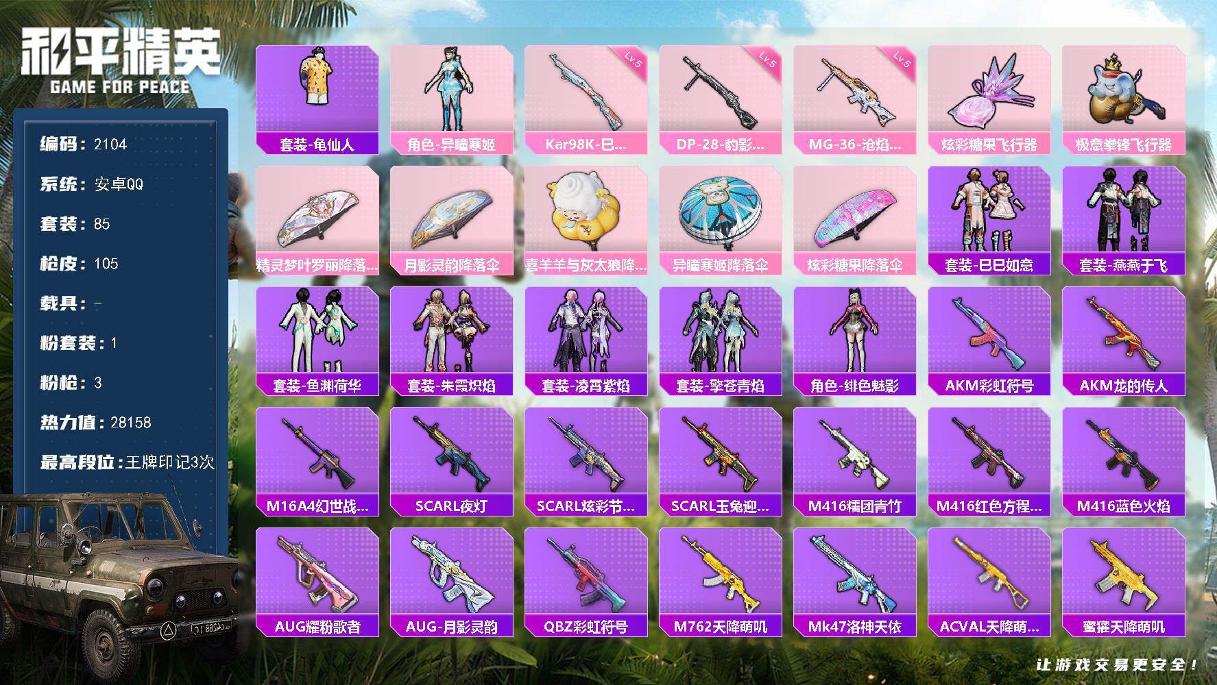 df安卓 【地铁老号,满天赋,特价出】手Q-1粉装-3特效枪-0载具-2粉色飞