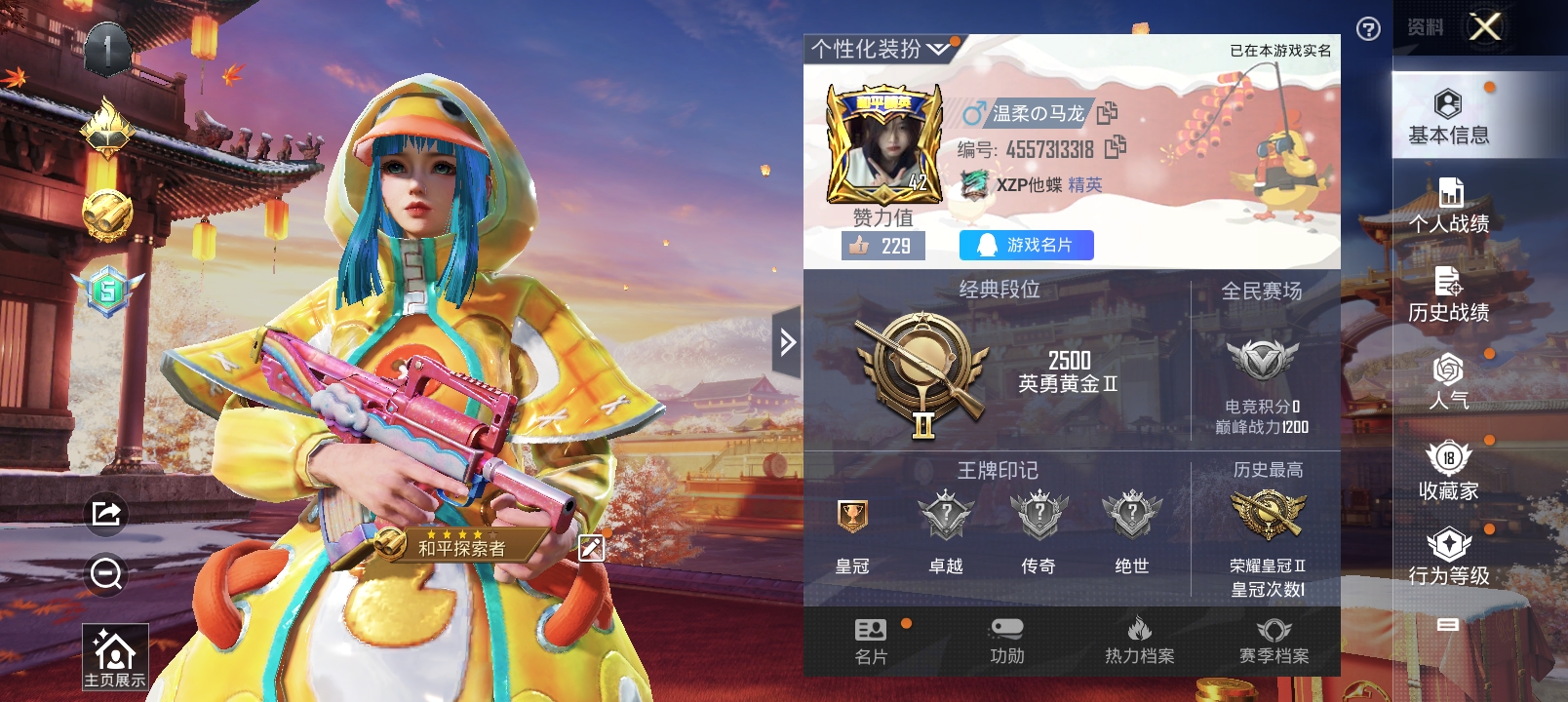 安卓 手Q-1粉装-2特效枪-0载具-0粉色飞行器-32640热力值-1王牌印
