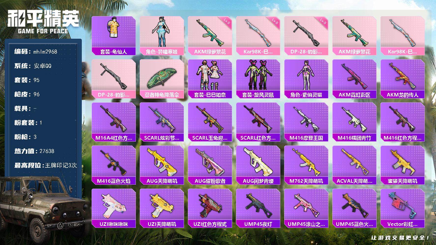【mhlm2968】安卓 手Q-1粉装-3特效枪-0载具-1粉色飞行器-276