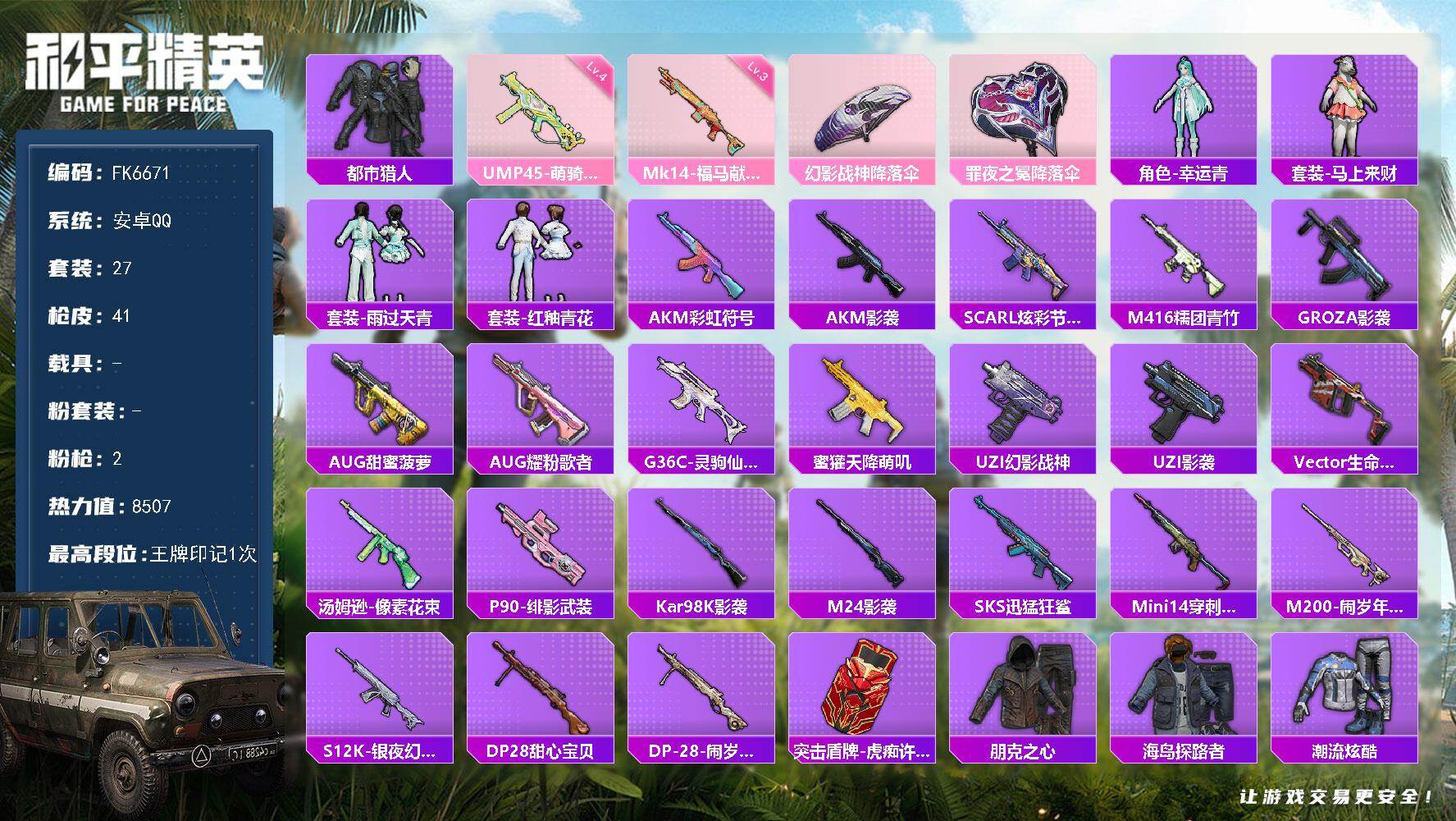 【FK6671】27套装/枪械2/装备28/战备31/王牌印记1/热力值850
