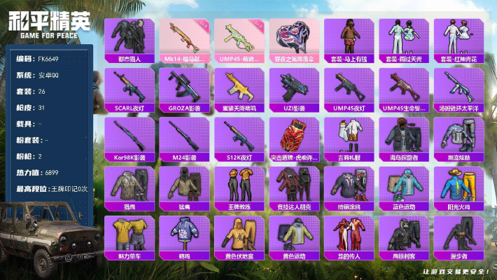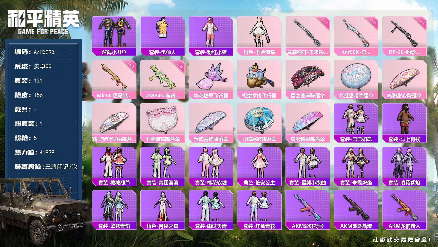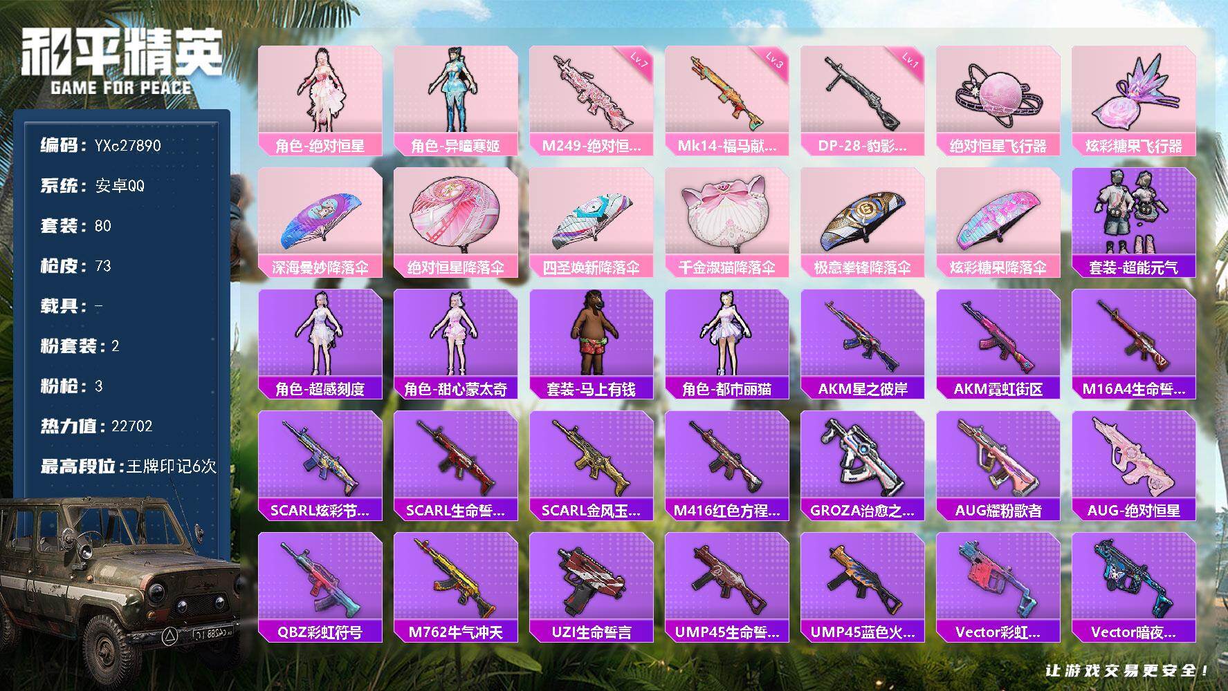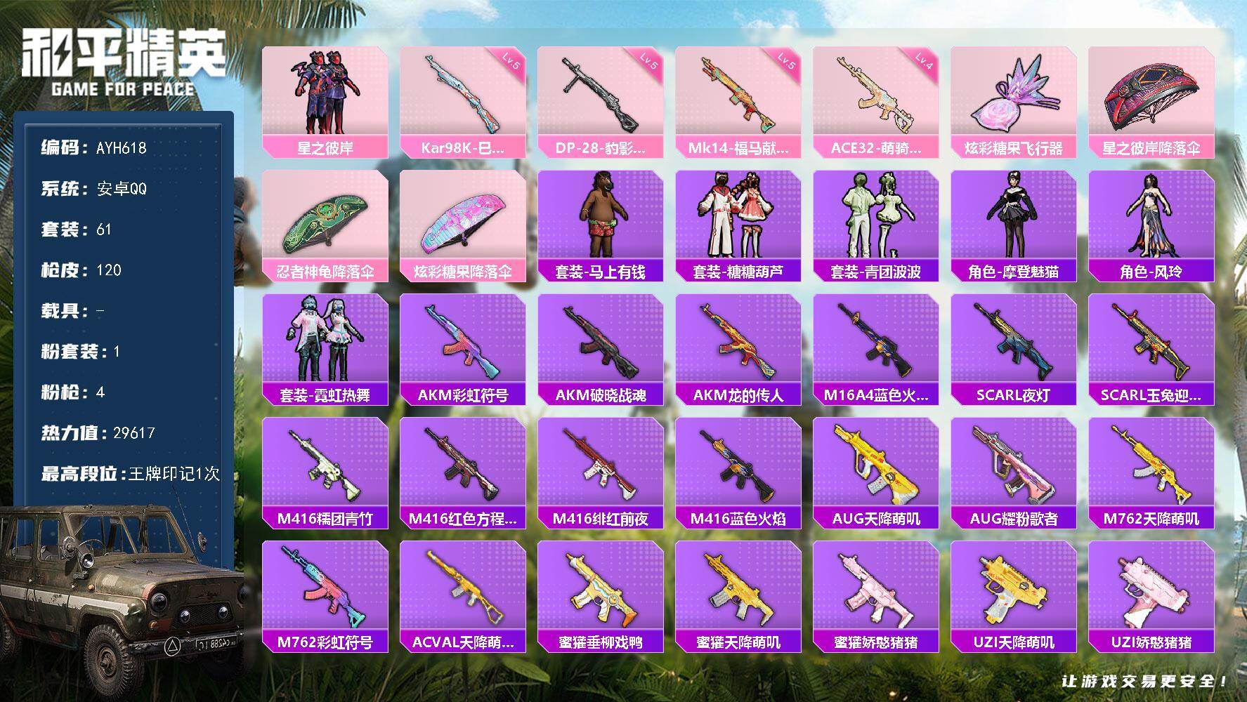 安卓 手Q-1粉装-4特效枪-0载具-1粉色飞行器-29617热力值-1王牌印