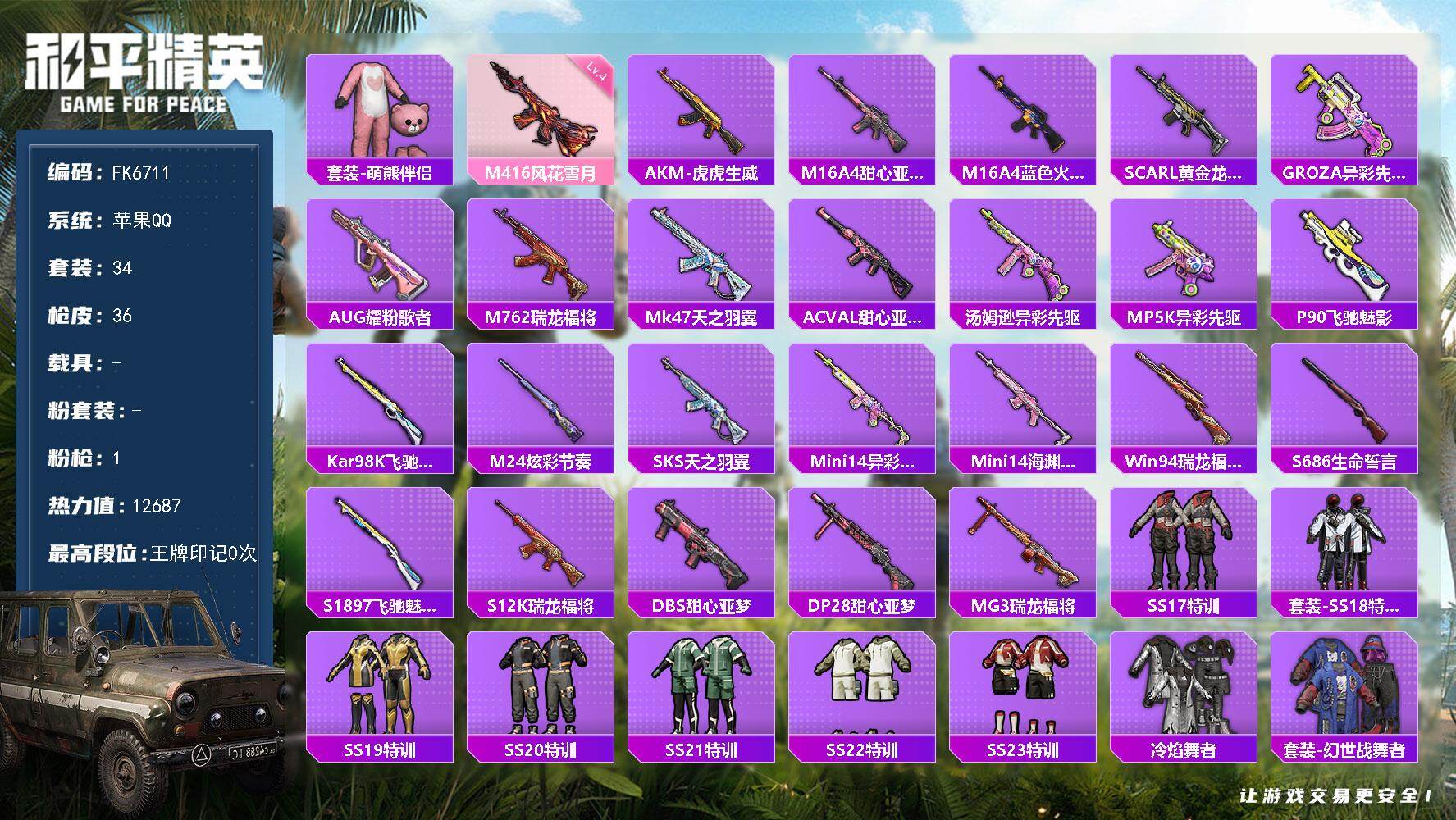【FK6711】34套装/枪械1/装备36/战备35/热力值12687/四级M