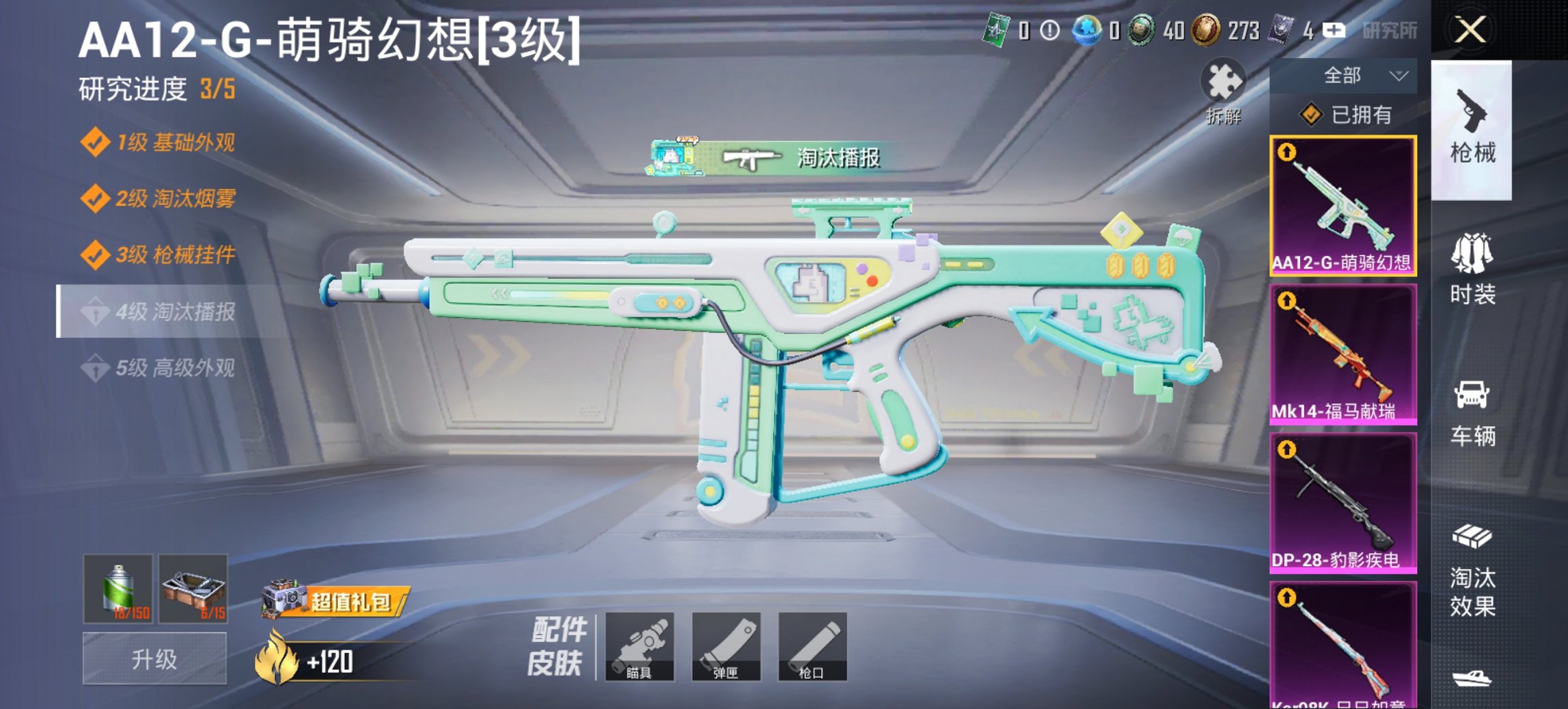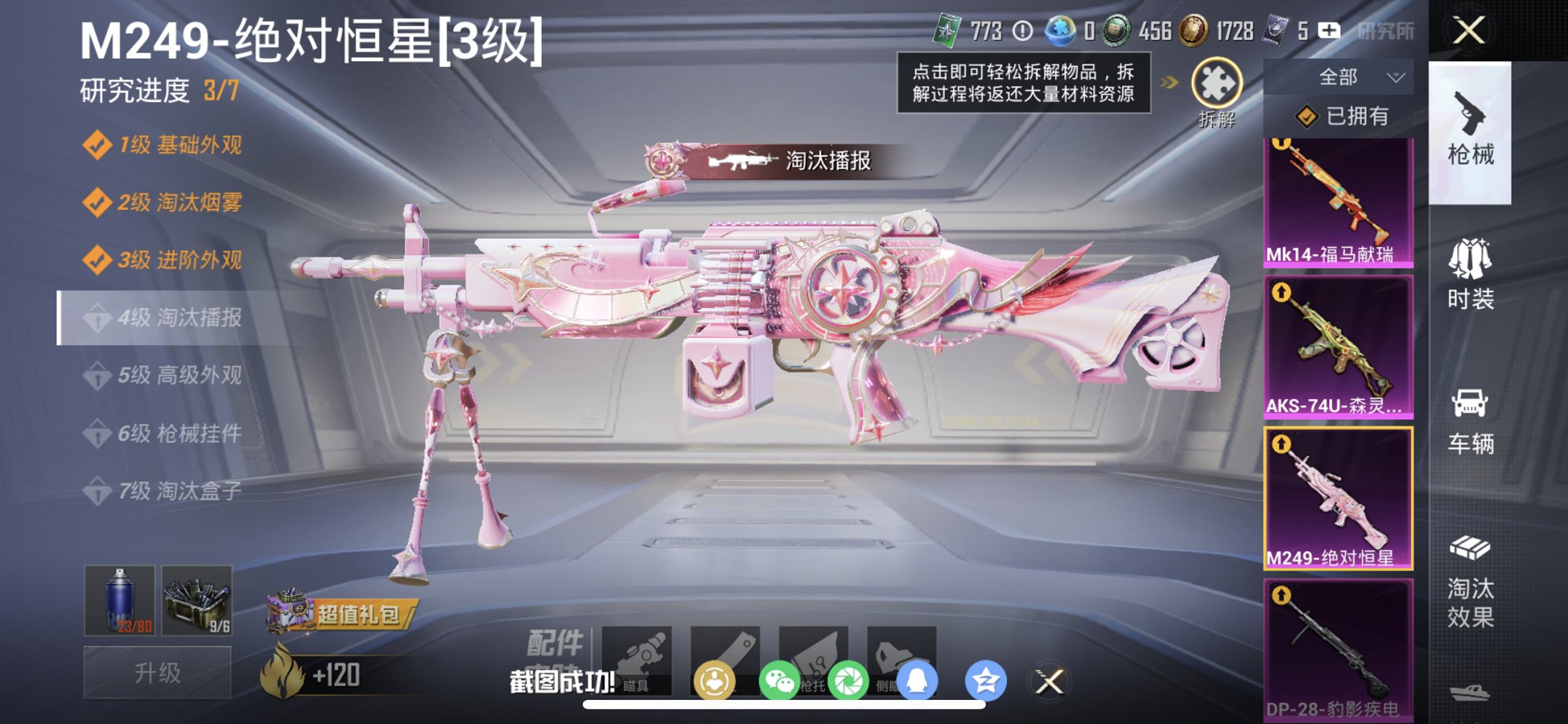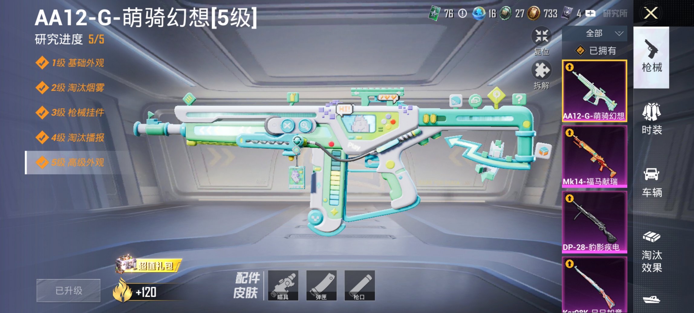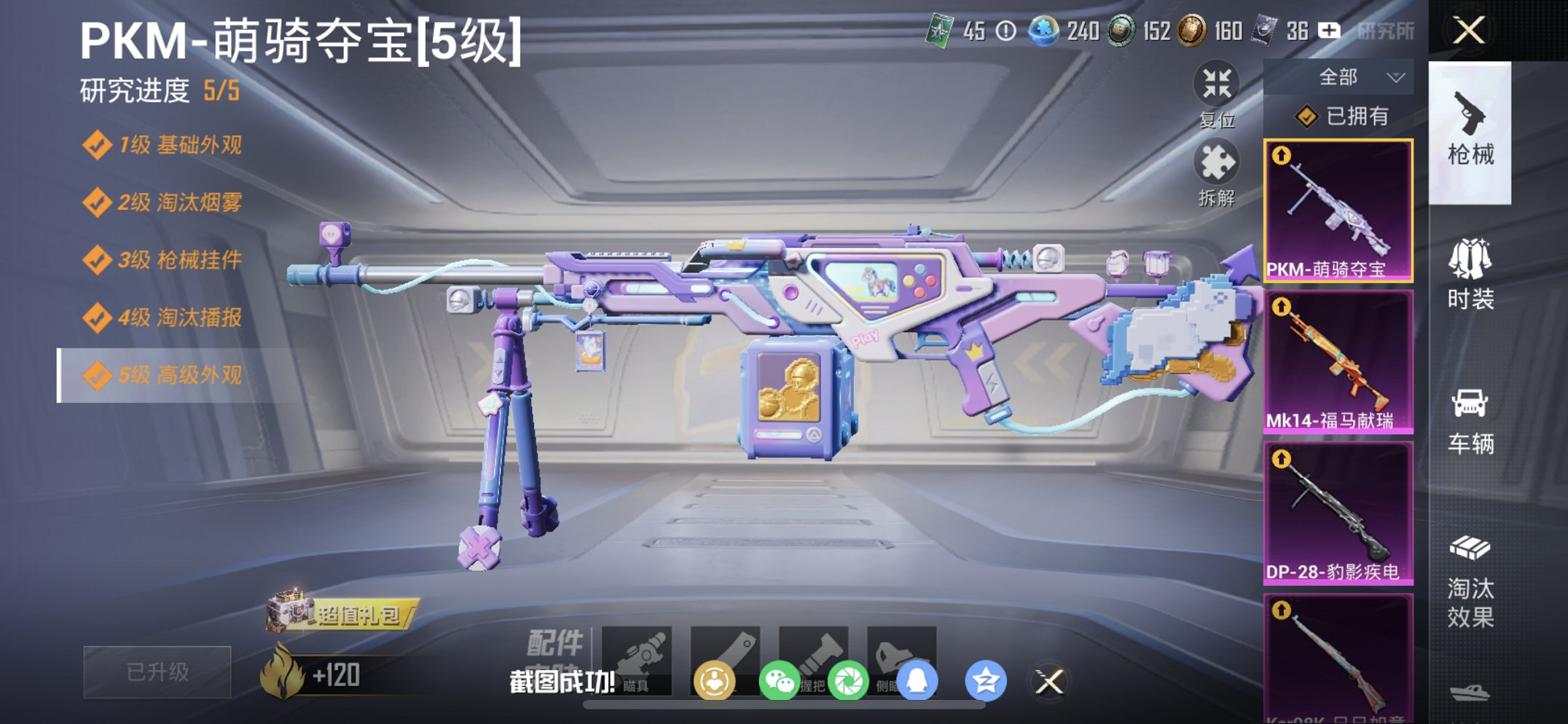 1粉装-4特效枪-0载具-0粉色飞行器