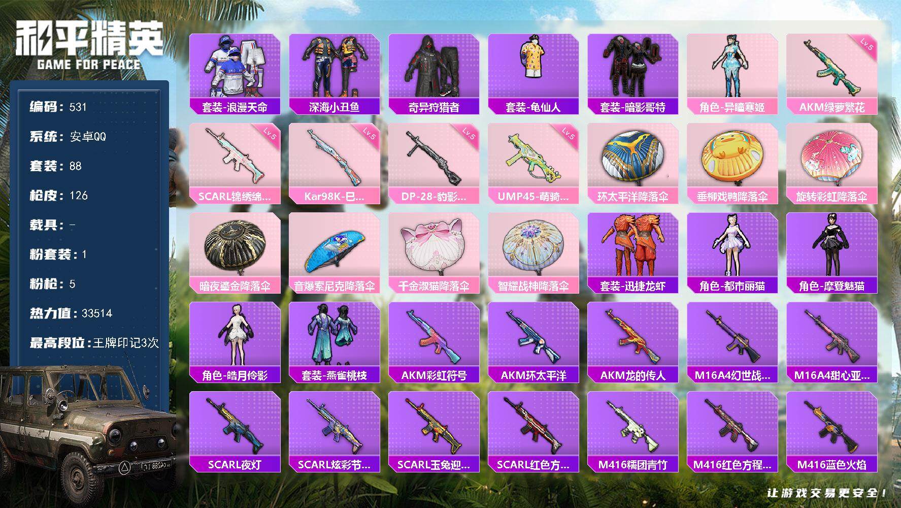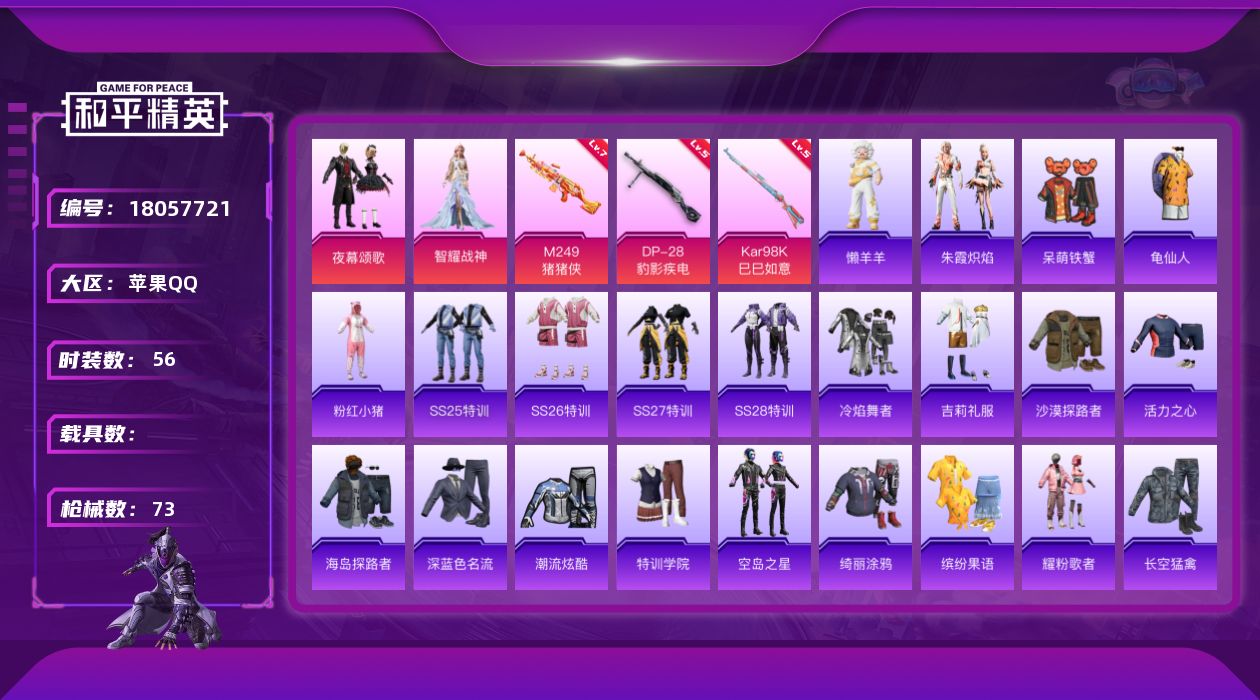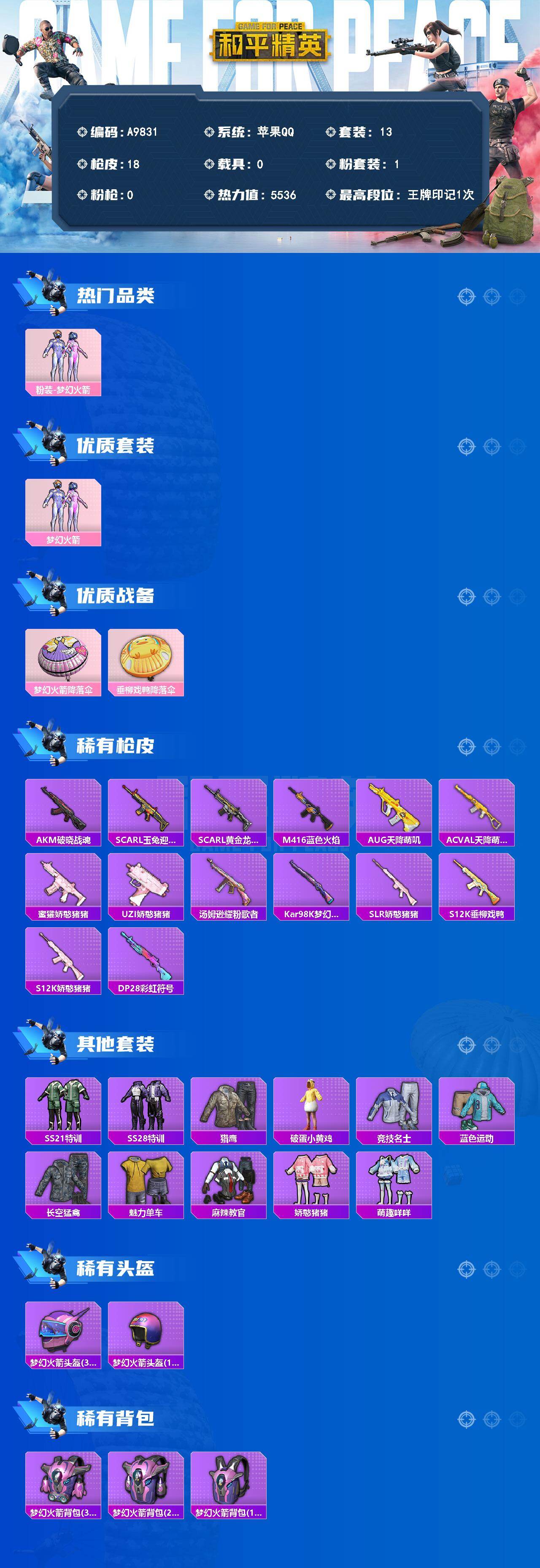 hs43440 苹果手Q-2王牌印记-1粉装-0特效枪-2载具-13042热力值-25套装-26枪皮
