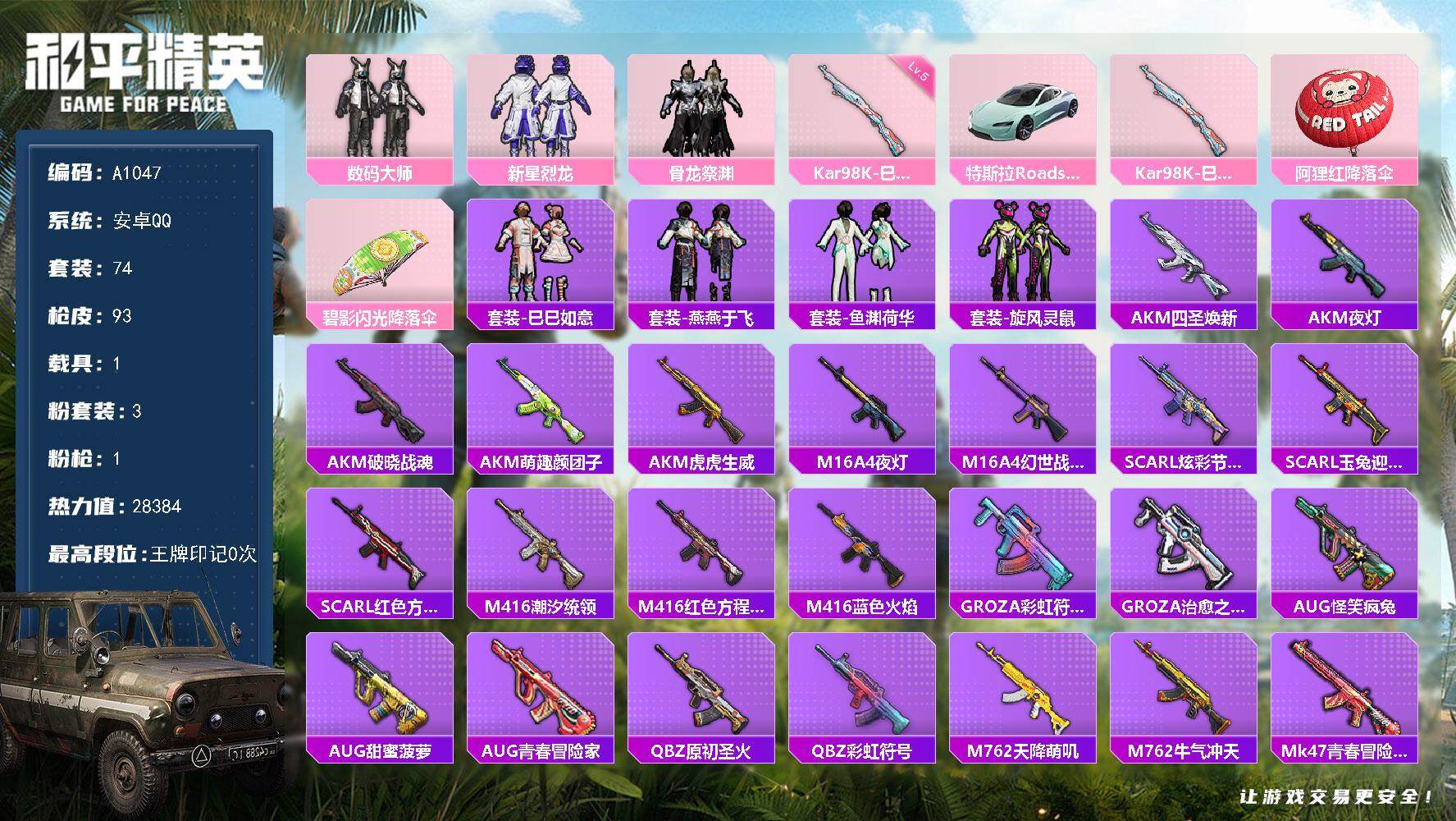 【商品标题】:安卓 手Q-5粉装-2特效枪-0载具-34096热力值-7印记-