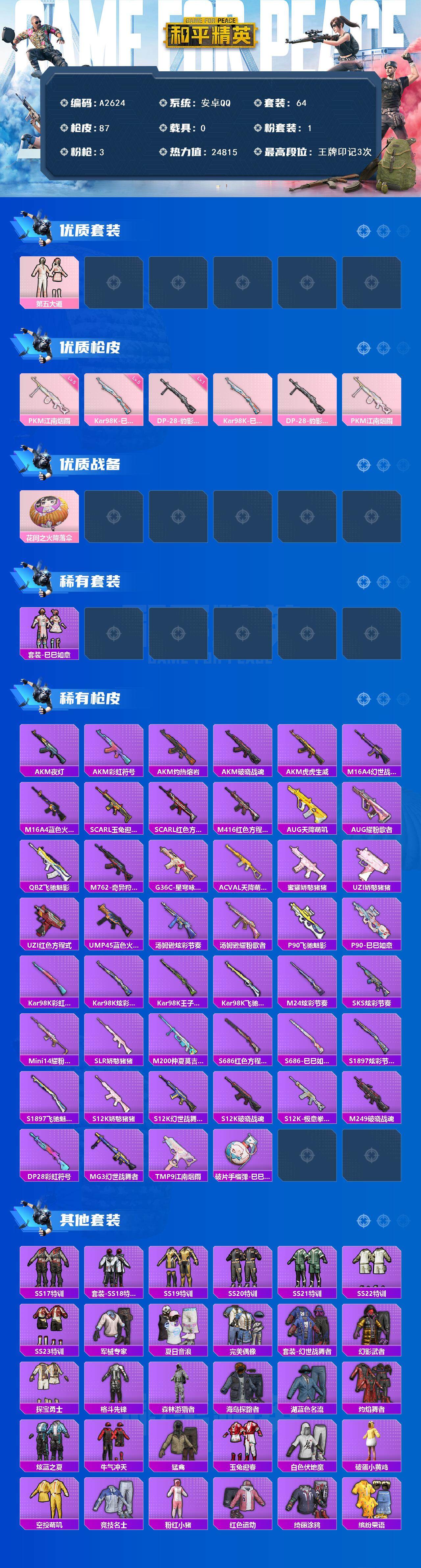 4特效枪2粉装 安卓Q区-45221热力值-8印记-108套装
