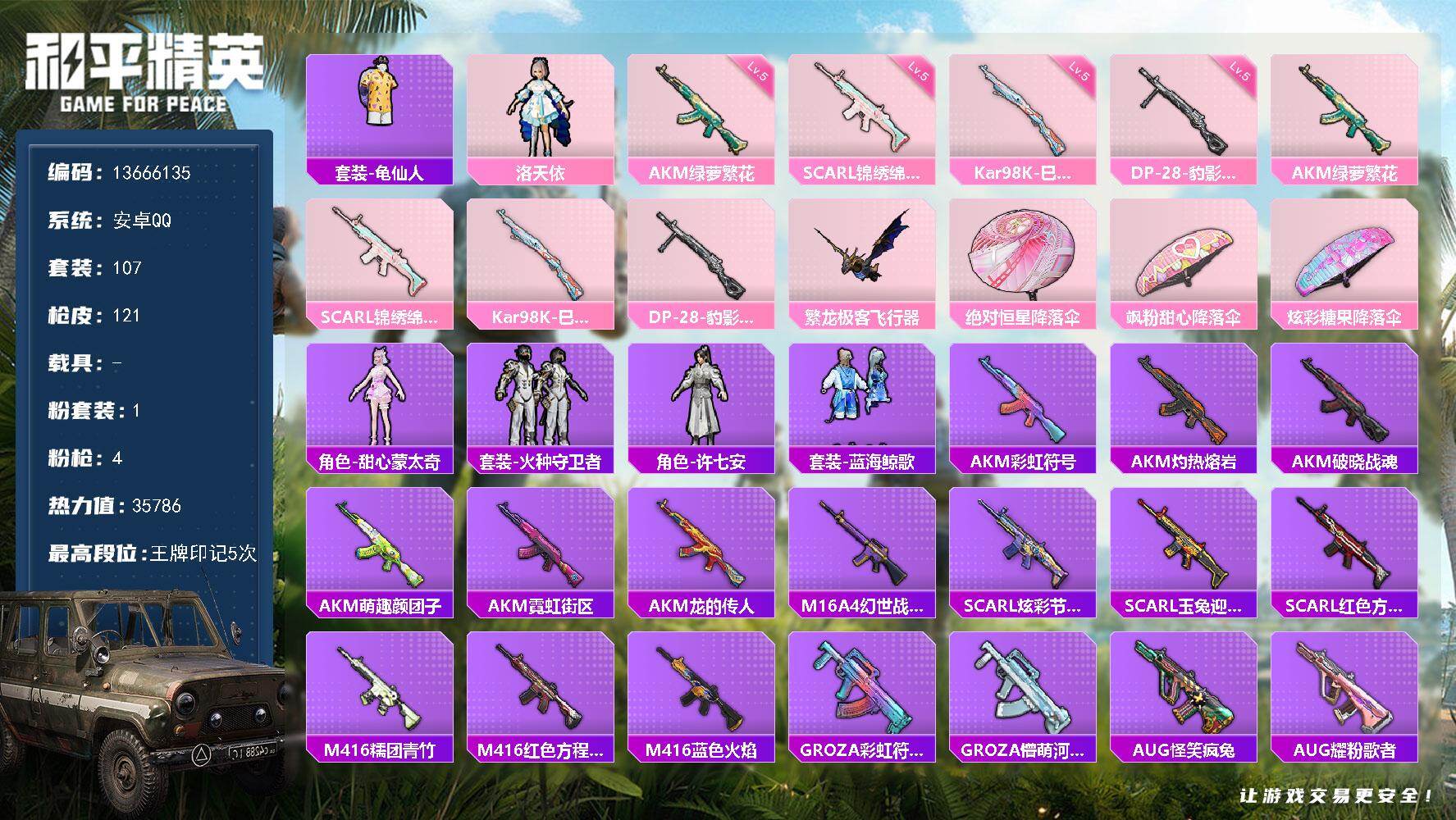 安卓手Q-0王牌印记-2粉装-4特效枪-31817热力值-81套