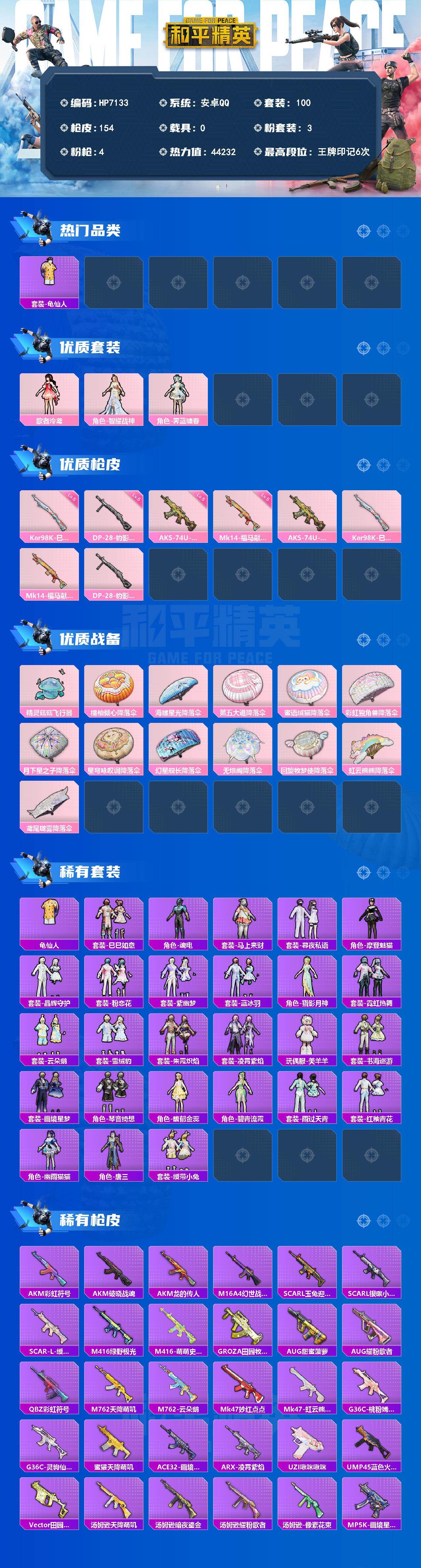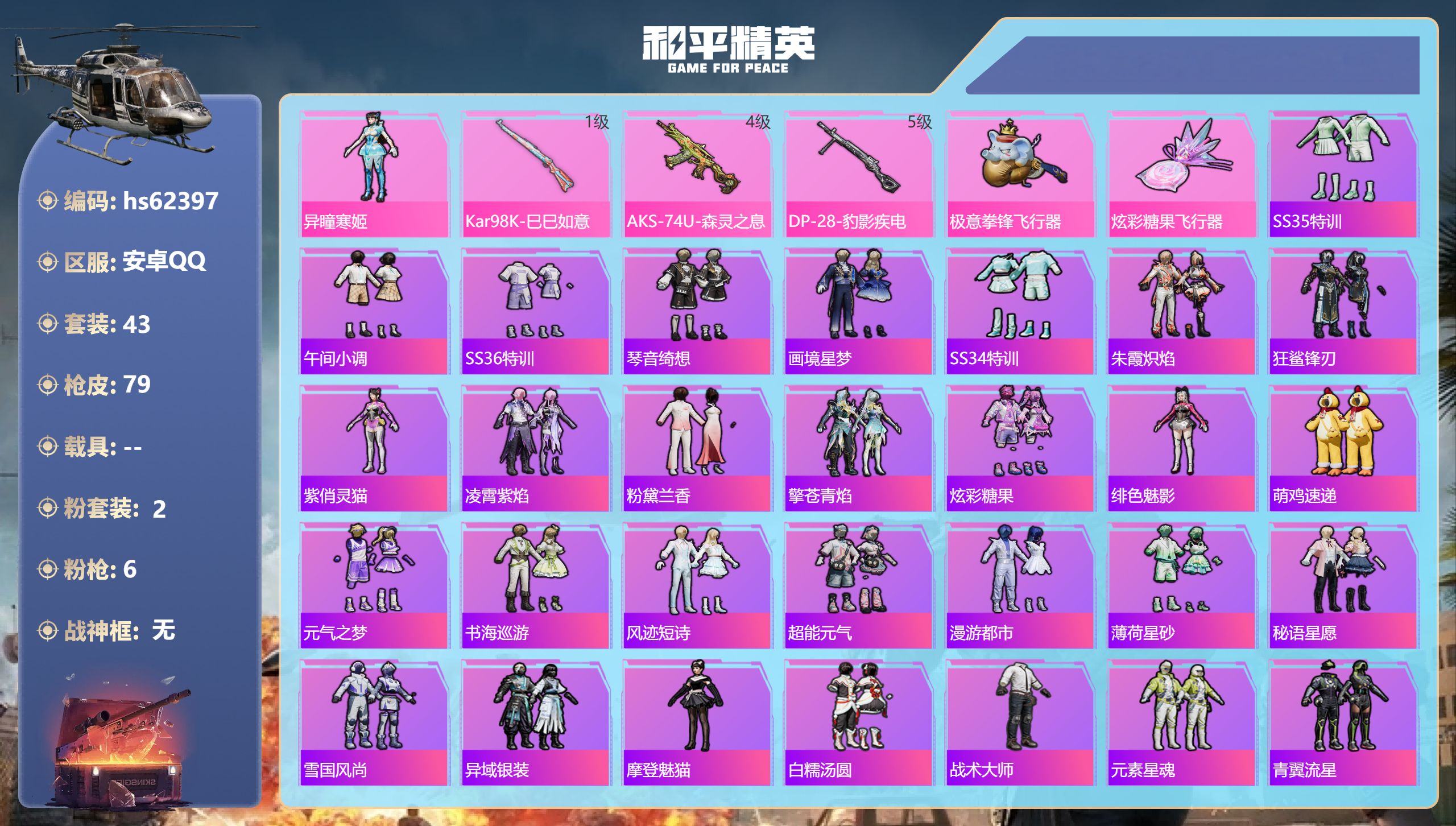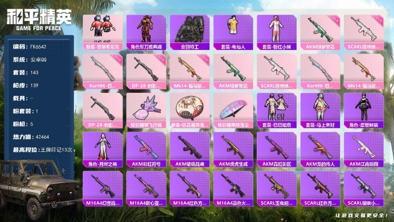 安卓手Q-0王牌印记-2粉装-6特效枪-22246热力值-43套