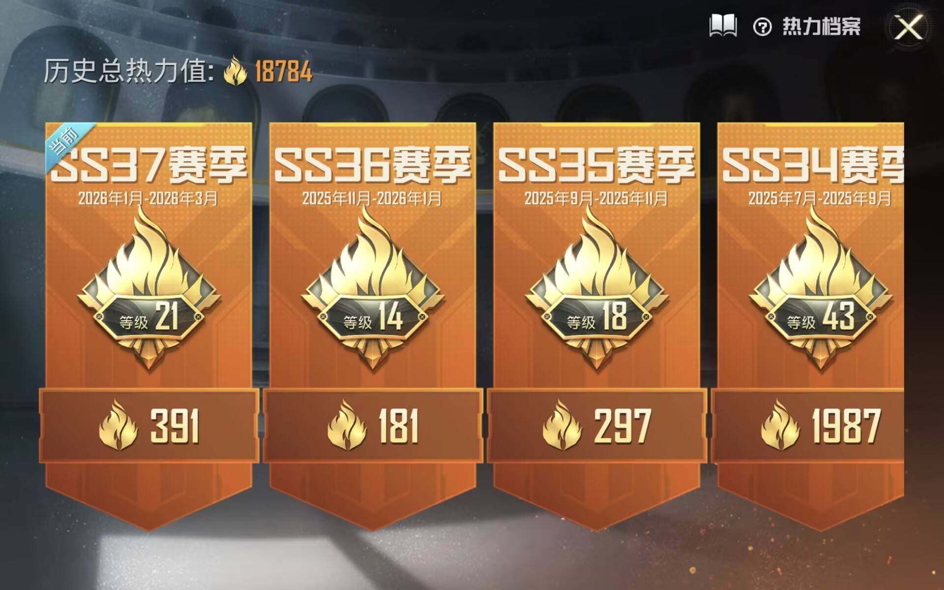 107套装/枪械4/装备109/战备87/王牌印记5/热力值35786/五级A