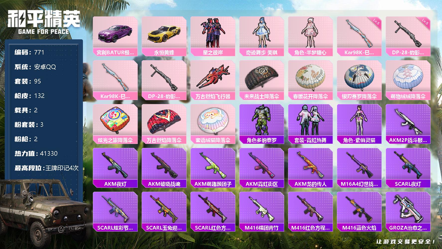 hs54932 苹果手Q-4王牌印记-10粉装-1特效枪-1载具-43404热力值-143套装-11