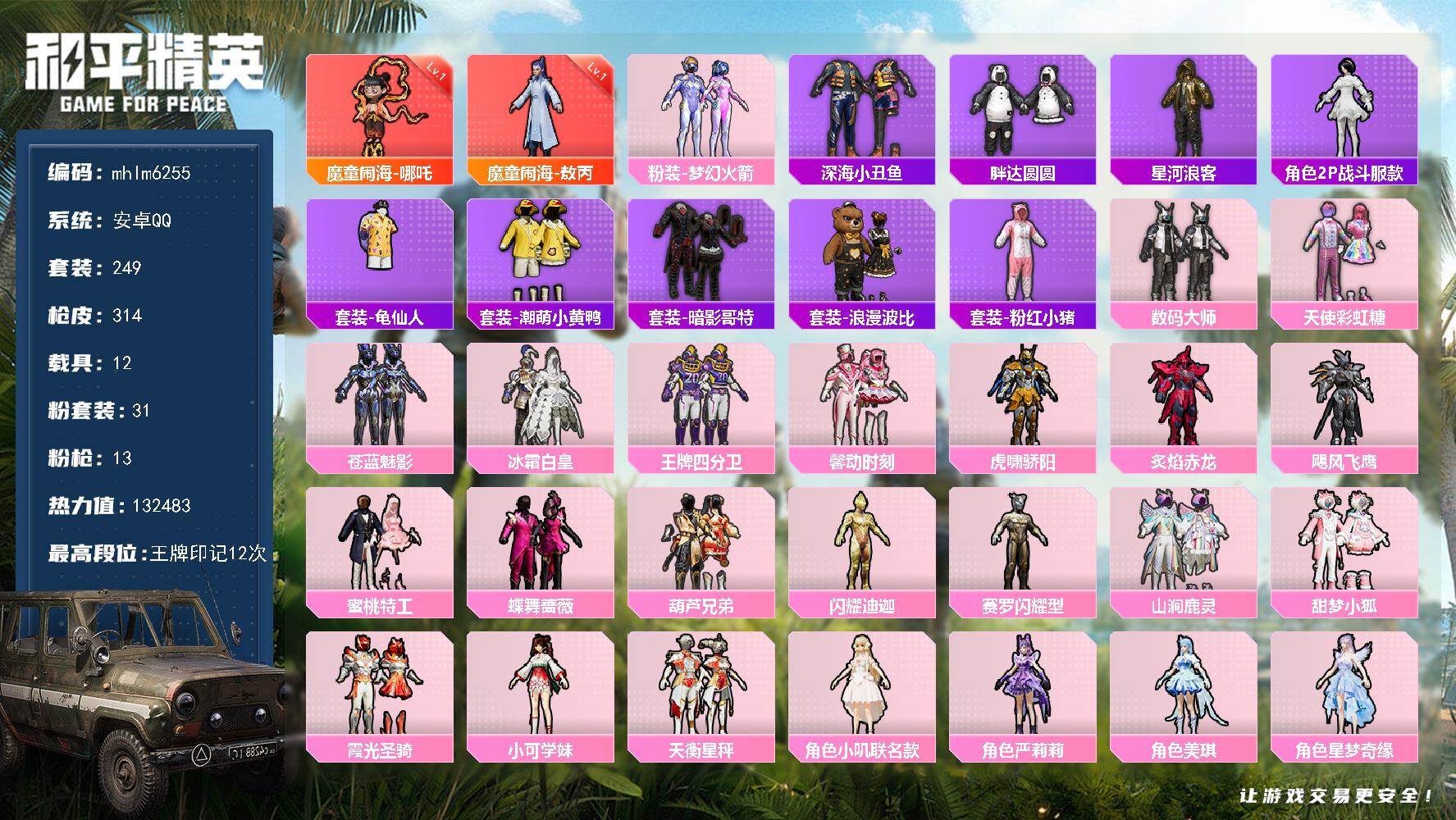 【mhlm6255】安卓 手Q-2神装-31粉装-13特效枪-12载具-15粉