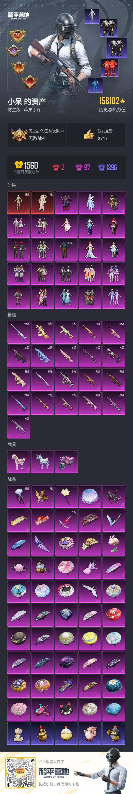 苹果 手Q-3粉装-2特效枪-0载具-3粉色飞行器-32710热力值-5王牌印