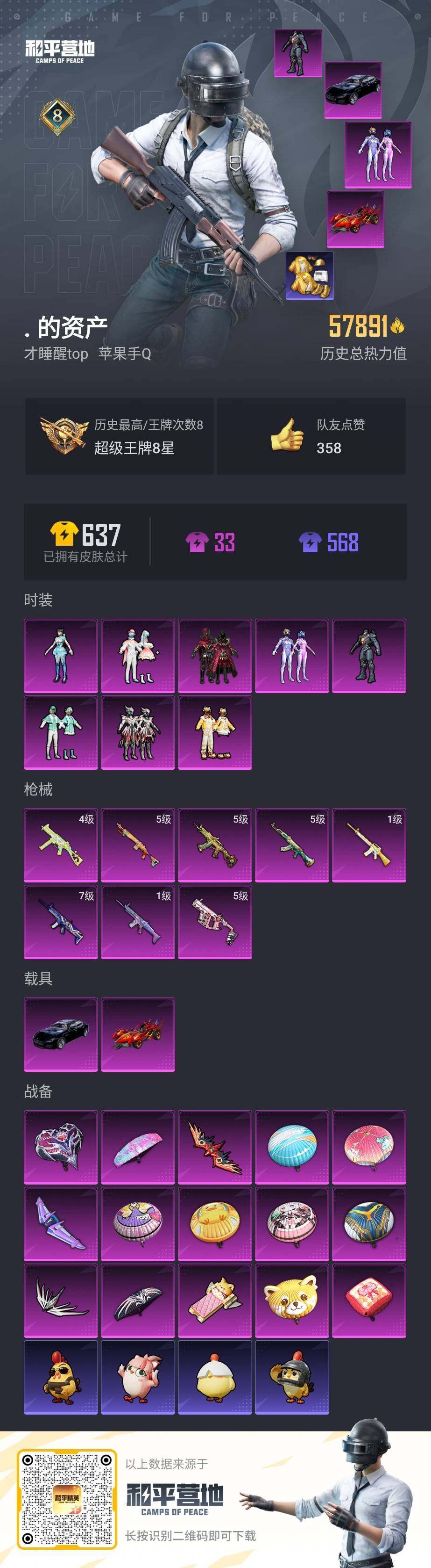 苹果 手Q-3粉装-3特效枪-0载具-3粉色飞行器-53293热力值-2王牌印